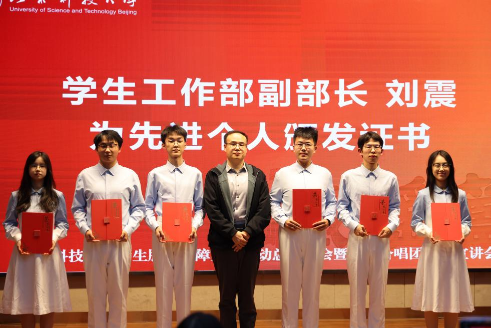刘震为获奖同学颁发荣誉证书。这份荣誉,既是对过往付出的肯定,也是对未来继续奋进的期许。