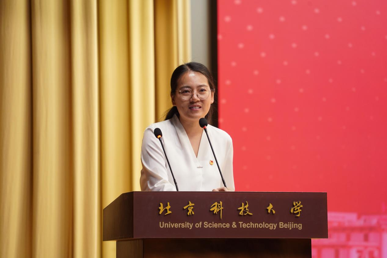 外国语学院本科2024级学生邢悦作为十佳标兵代表进行宣讲。分享她在社会实践中“受教育、长才干、作贡献”的历程,彰显了北科学子扎根实践、传递温情的责任与担当。