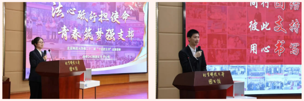 在“支部事迹展风采”环节,选手们依次登台。他们用鲜活的案例、生动的讲述,呈现了团支部在思想引领、学风建设、社会实践等方面取得的突出成效,多维度展现新时代团支书的责任与担当。选手们以“红歌里的中国”为主题,用青春之声诠释经典红歌背后的精神密码,将旋律中的红色基因融入支部实践的每一个音符,唱响了“请党放心,强国有我”的青春誓言。选手们面对来自团员青年思想、学习、生活中的真实案例,提出兼具创新性与实操性的解决方案,展现出扎实的业务功底与从容的应变能力。