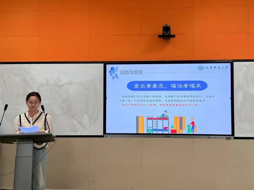 标兵宿舍长获得者、2023级本科生张佳悦分享宿舍建设经验。她着重强调了打造良好宿舍关系的重要性并提供如何搭建和谐宿舍的策略,用真实案例和实用建议为新生宿舍长提供了可借鉴的“管理手册”。