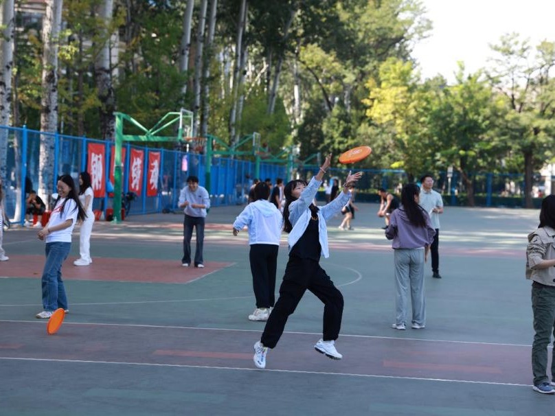 飞盘活动中,五彩飞盘在空中划出优美弧线。同学们时而快速奔跑,时而巧妙传接,战术布置与临场应变相得益彰。在一次次精彩的配合中,团队凝聚力得到升华,竞技的激情与友谊的温度交织共鸣。