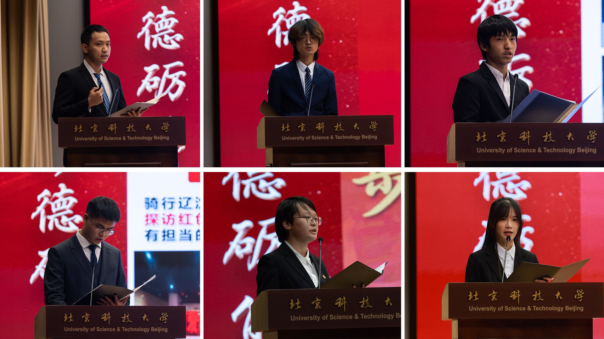 赵俊清脚踏实地深耕学业,凭借英语专长,参加青年使者赴美交流项目,将中国文化带出国门,彰显当代青年的文化自信;吴少兴结合自身微积分的优异成绩,分享了自己做好时间规划、模型化整理笔记和以赛促学的学习经验,为新生提供参考;徐晨宇培养了良好的自学能力,大学依然保持良好的自学习惯,在学业与竞赛中斩获佳绩,彰显新时代学子的进取风貌;王英铭讲述了自己合理使用AI,自学《C++程序设计》课程,并取得优异成绩的经历,体现了新时代青年善于探索创新的精神;杨雅婷在具有扎实的学业基础之外,在宣传工作上躬身力行,从军训团宣教组干事到班级宣传委员,她矢志不渝锻造钢筋铁骨,努力做好新时代北科青年;龙碧莹秉持初心,筑牢学业根基,在科研探索中深挖机理,怀揣热爱,在学工、实践、志愿等方面多点开花;张杏达着重培养自己的“专注力、自主力和向上力”,发挥自身学习优势,在“学霸帮帮忙”活动中帮助所负责的全部同学补考通过;刘志豪博观约取,厚积薄发,在学科竞赛中表现优异,同时他结合编导的爱好,参与学校多部微电影剧本制作和拍摄,展现全面发展的青春风采。