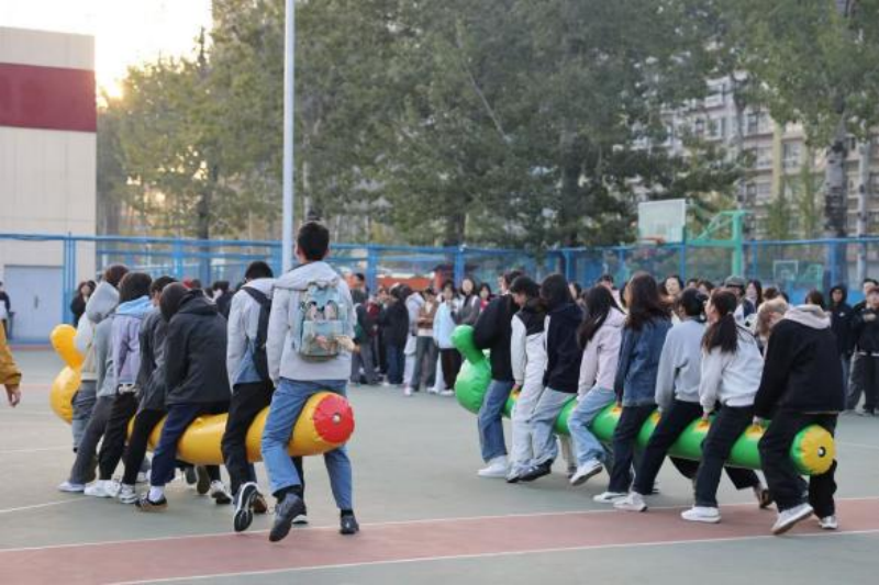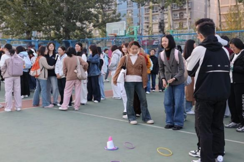活动设置多类特色环节,组织传统健身气功八段锦练习,传递中华优秀传统文化养生智慧,助学生身心放松;反向指令游戏以趣味形式锻炼学生专注力与应变能力,拉近新生距离;组织各班开展套圈比赛与毛毛虫比赛,凝聚集体力量。