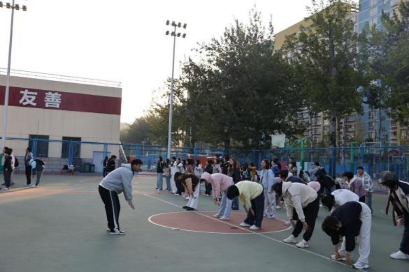 10月13日,文法学院组织2025级本科新生于篮球场开展阳光早操活动。