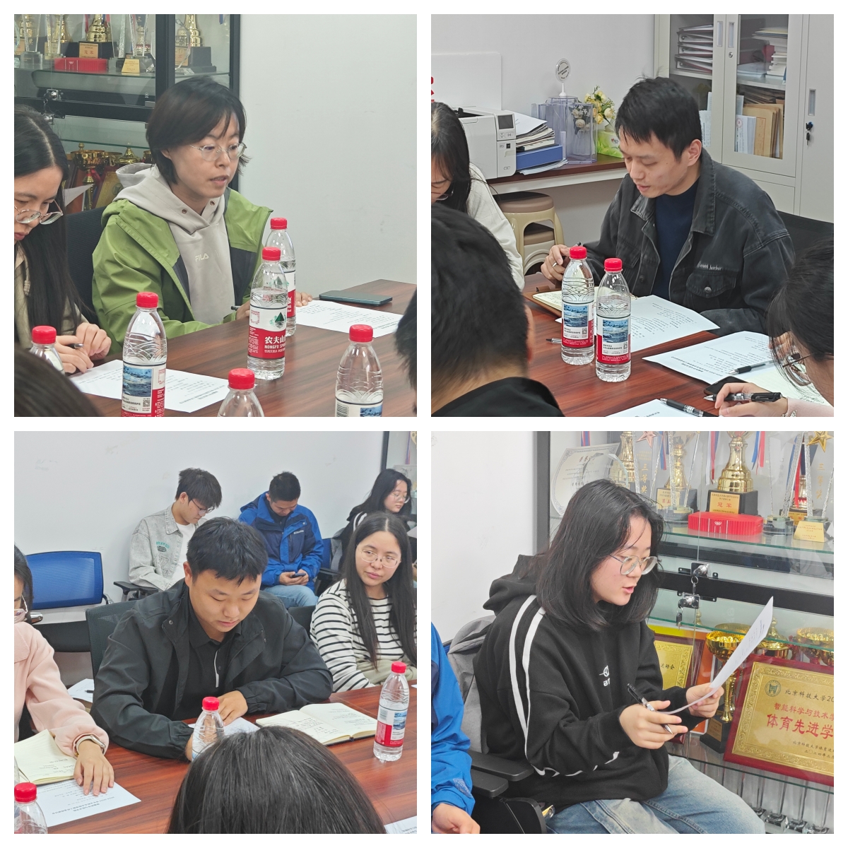 在交流研讨环节,全程导师代表结合带教实践,梳理了不同年级学生的阶段性问题,分享了定期沟通、跨年级互助等有效互动方式,并提出需关注学生心理状态、加强精准指导等思考;辅导员汇报各年级学生整体情况,指出后进学生存在动力不足、目标模糊等问题,明确将通过专题引导、深化与导师协作强化学风建设;学生代表反馈师生互动中的沟通障碍,同时提出提前对接导师研究方向、增加轻松交流场景等建议。