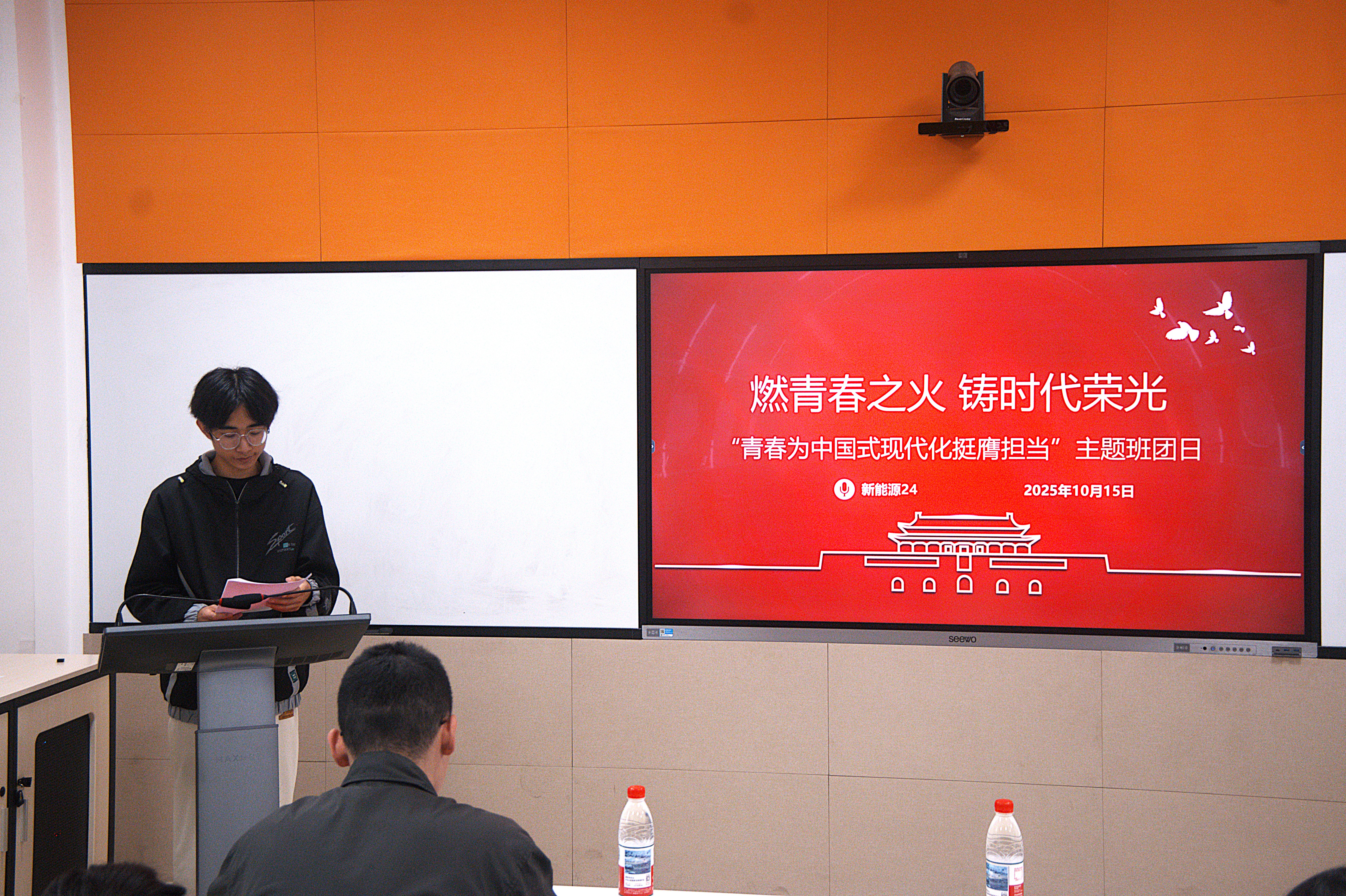 10月15日上午,能源与环境工程学院新能源24团支部在科技楼1001组织开展“青春为中国式现代化挺膺担当”主题班团日活动,学院2024级本科生辅导员王瑞梓,新能源24团支部全体成员参加活动。本次活动通过多元形式引导青年学子深刻理解中国式现代化的科学内涵,挺膺担当使命,凝聚奋进力量。