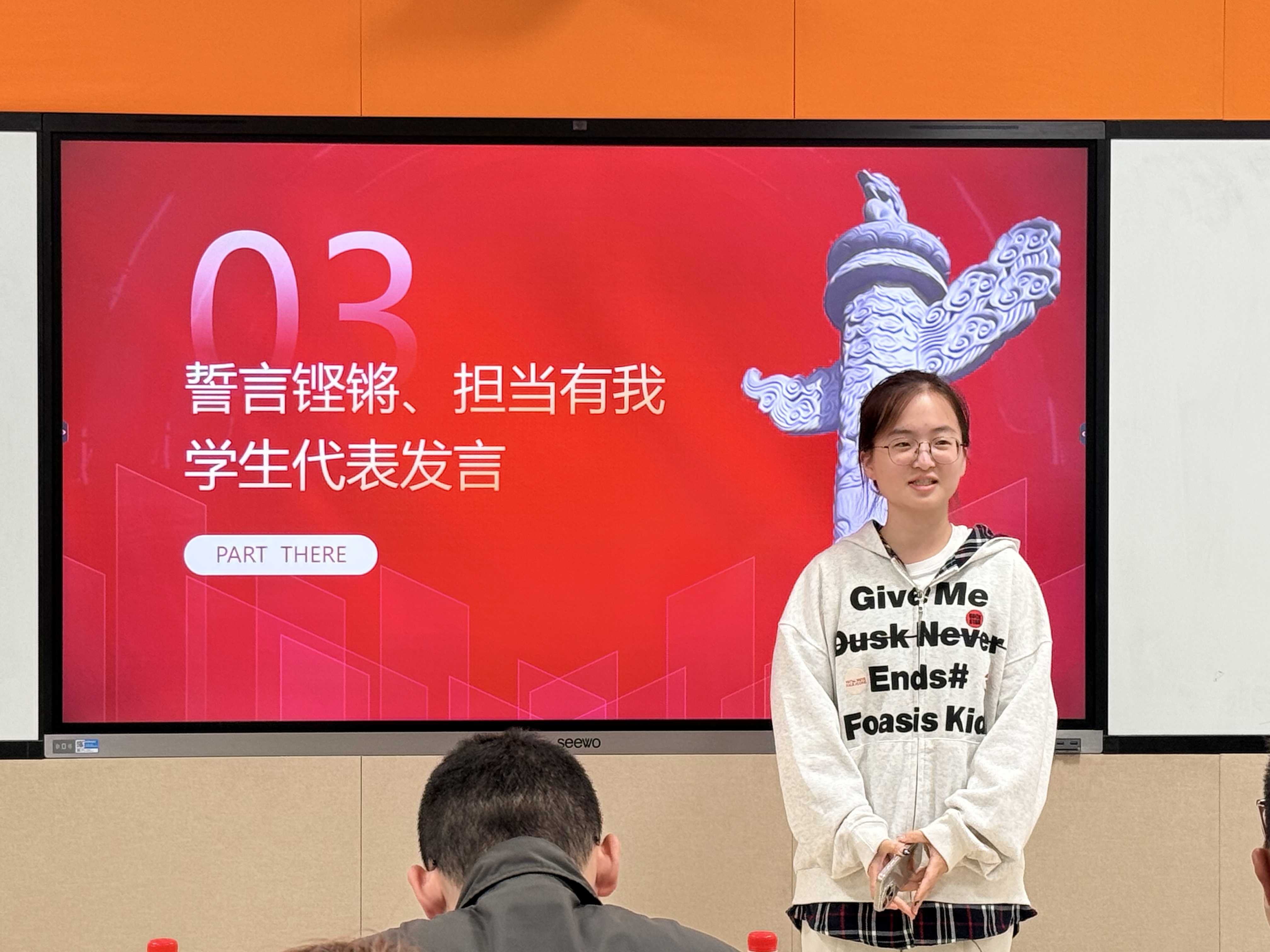 王瑞梓在总结中肯定活动成效,鼓励同学们将所学所悟转化为学习动力,将专业优势与国家发展需求紧密结合,以实际行动践行“青春为中国式现代化挺膺担当”的青春誓言。