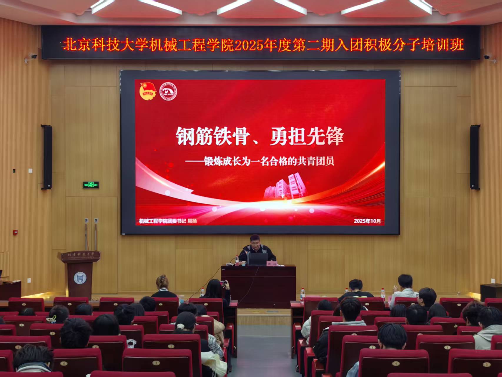 为积极响应学校关于加强青年思想政治教育的号召,引导广大青年学生坚定理想信念,增强使命感与责任感,努力培育有理想、敢担当、能吃苦、肯奋斗的新时代好青年。10月22日,机械工程学院团委2025年第二期入团积极分子培训班开班典礼暨理论培训第一讲在学术报告厅顺利举办。