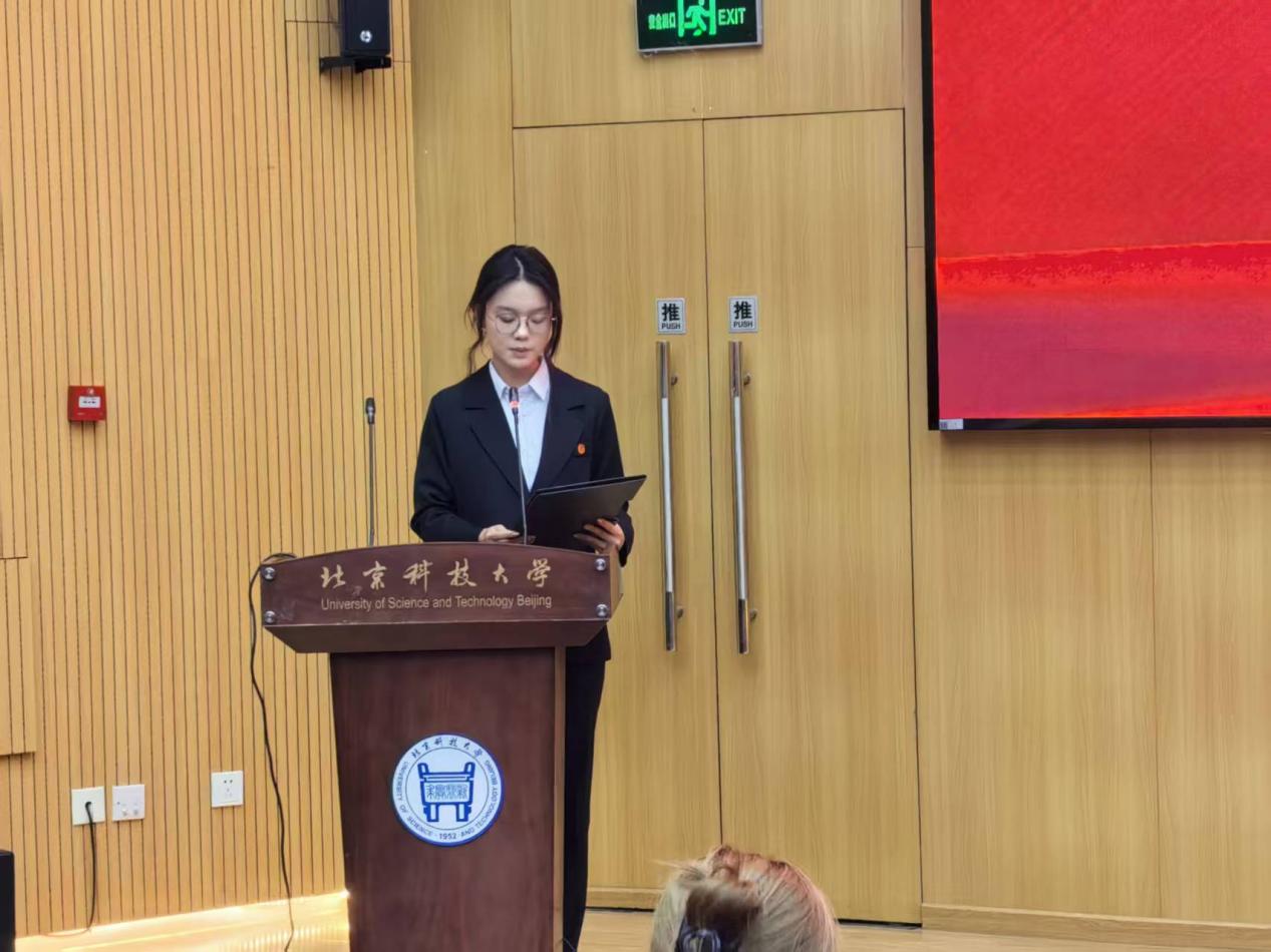 开班典礼第五项议程,优秀团员代表周博发言。周博同学回顾自身入团历程,向在座的同学们分享自身在成长道路上的经验和收获。她鼓励在场同学望大家能够多思考、多总结,将课上的知识学以致用。