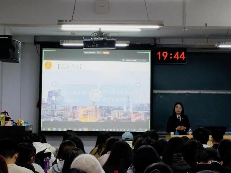 本次特邀北京市人民检察院第三分院检察官助理、北京市检察机关先进个人李丽担任主讲人,以“法学毕业生的星辰大海”为主题,与在场师生展开了一场富有启发性的交流。李丽主要从法学专业的定位、检察机关的法律地位和具体职能等方面展开,对北京法检机关招录数据、国内高校法学毕业生就业意向调查分析和实习情况进行分析,通过真实数据帮助同学们对法学专业的就业前景形成了更加明晰的认知。活动现场气氛热烈、座无虚席。李丽结合视频案例、现场问答等方式,围绕职业规划、学业困惑、实务技能等方面与在座学生展开踊跃交流。