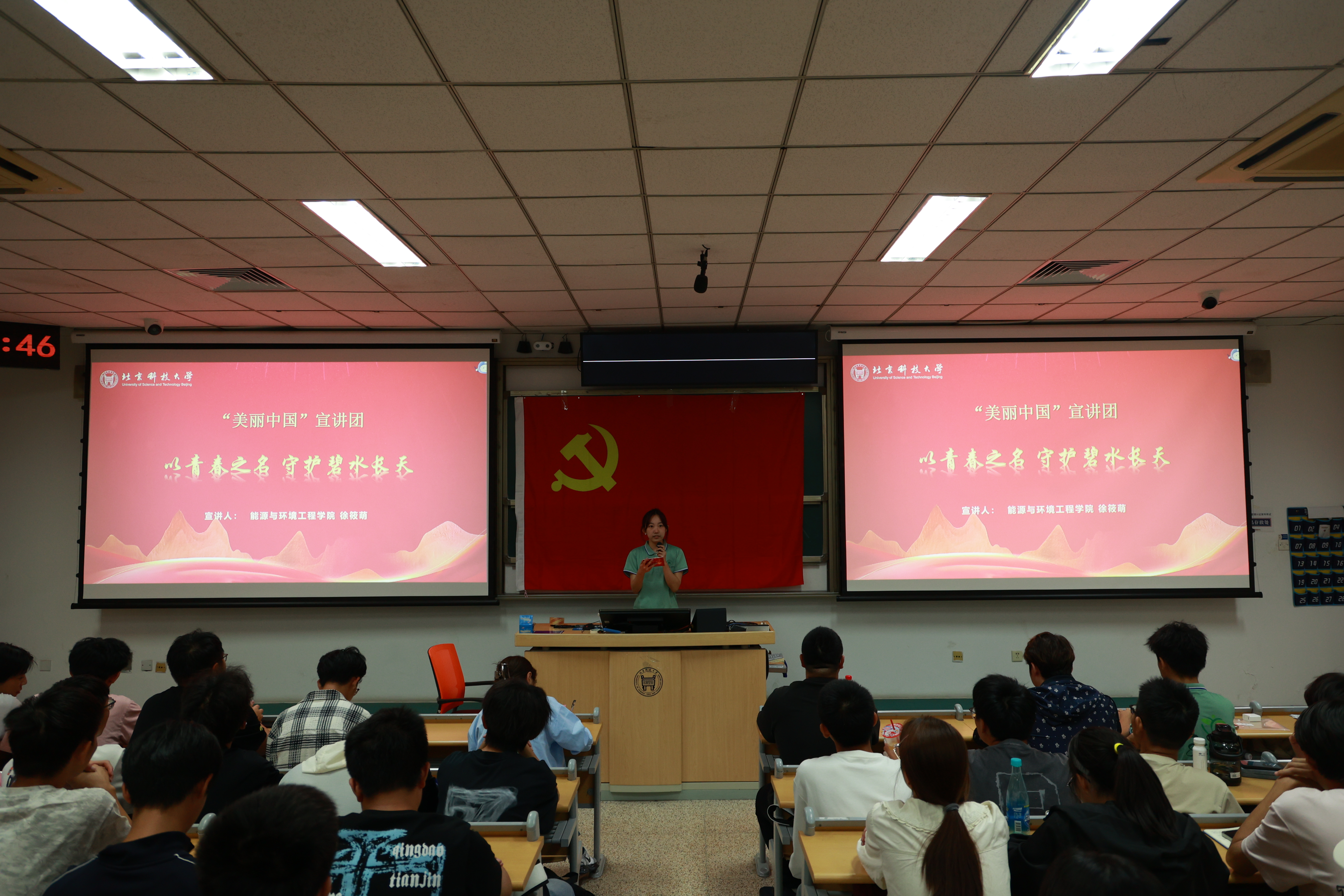 学院“美丽中国”宣讲团成员结合自身经历,围绕生态文明建设、绿色发展、科技创新与青年责任等主题开展宣讲,生动阐释加强生态环境保护、推进美丽中国建设的重要意义与实践路径,引导全体新生将个人成长与国家发展紧密结合,积极响应党的号召,夯实专业基础,以实际行动投身绿水青山守护事业,勇担生态文明建设的时代使命。