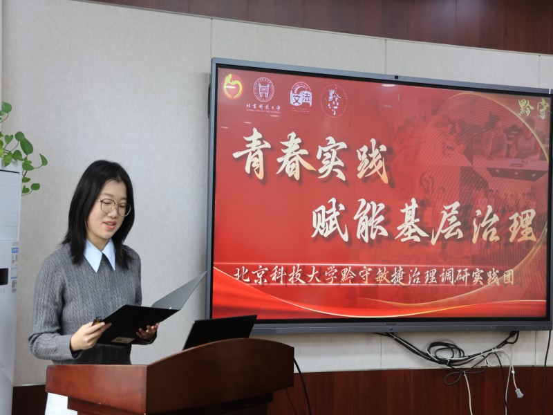 座谈会上,文法学院2022级行政管理专业党支部书记郝胜琦汇报了一年来与太阳宫社区党委第四党支部的共建历程及参与的系列社区活动;“黔守”敏捷治理调研实践团队长徐若璇围绕暑期在太阳宫社区开展的调研过程、社会服务与实践成果进行专题汇报。