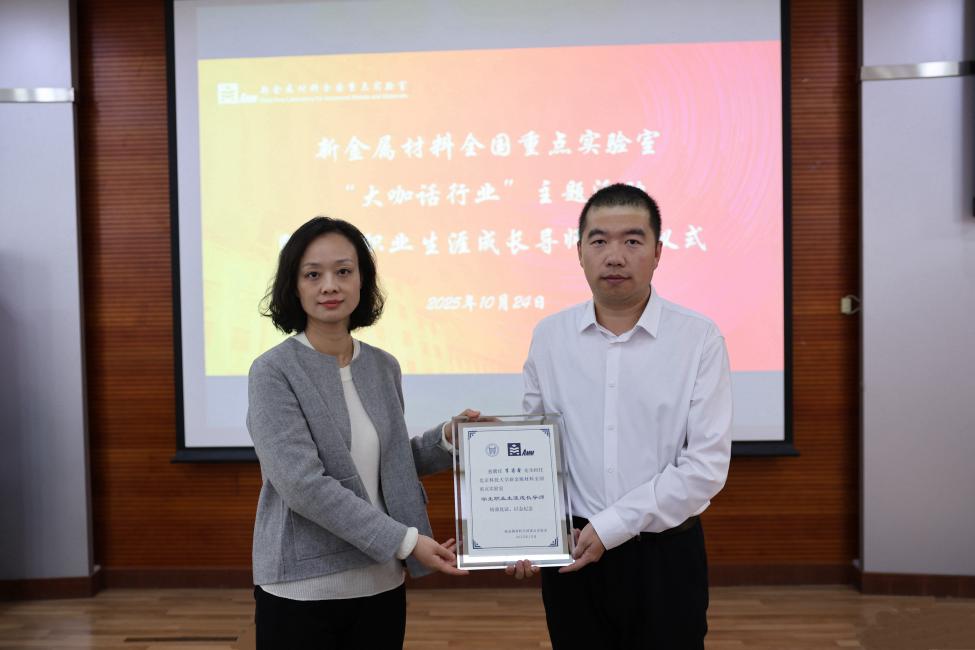 为帮助实验室学生进一步明晰就业方向、提升就业竞争力,近日,新金属材料全国重点实验室在主楼353举行“大咖话行业”主题活动。本次活动特邀南京钢铁板材事业部技术研发处副处长、新材料全重企业兼职辅导员李睿鑫作主讲嘉宾,学生工作部、武装部部长赵萌,学生工作部副部长刘震,新金属材料全国重点实验室党委副书记、副主任王佳出席活动,活动由新金属材料全国重点实验室辅导员赵高闻璐主持。