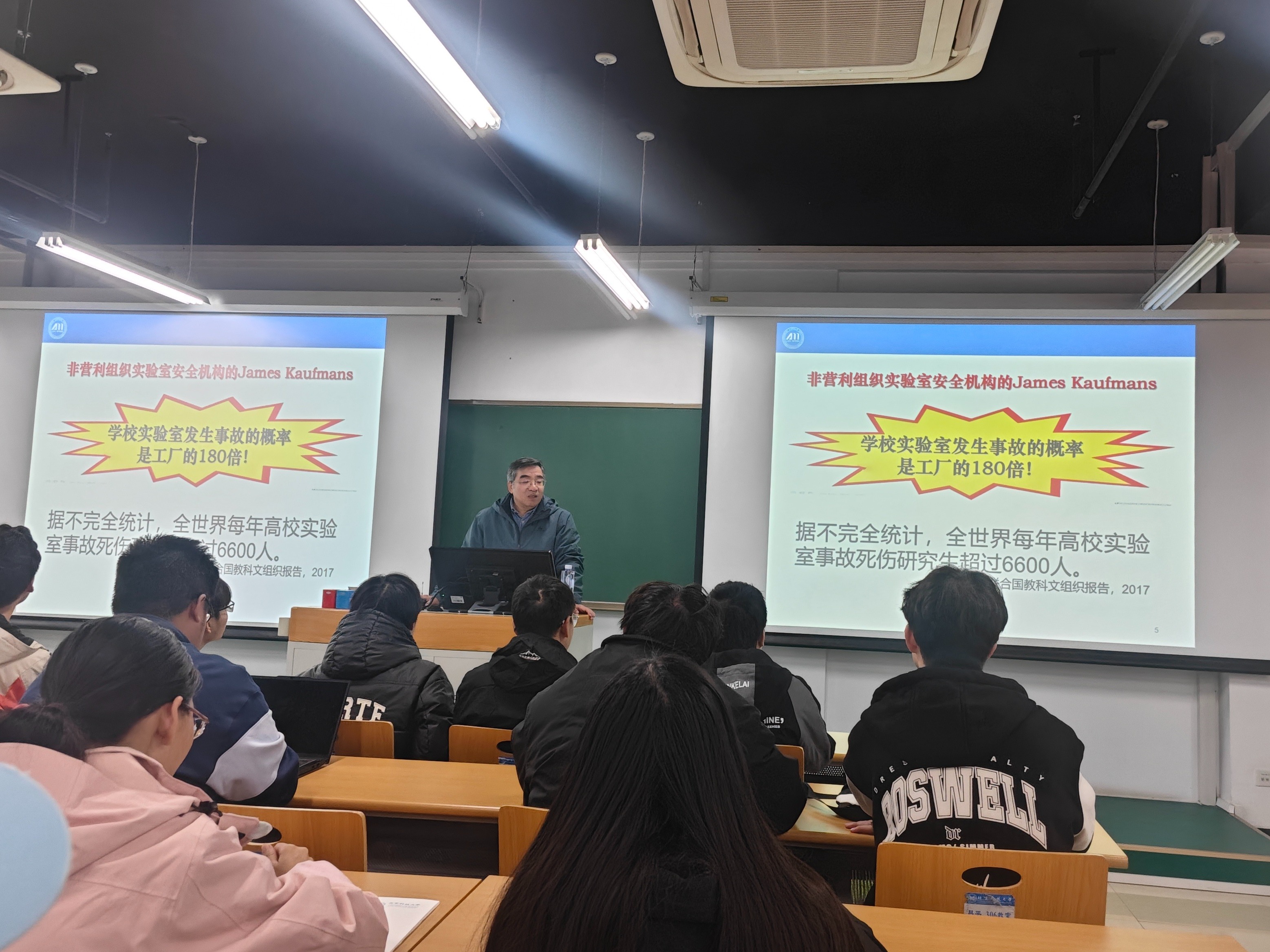 讲座最后,王辉教授介绍了实验室为护航科研所构建的安全管理体系,并重申“安全责任重于泰山”。唯有每位学生都履行安全职责,共同构筑坚实防线,方能让科研梦想在安全的环境中茁壮成长,行稳致远。
