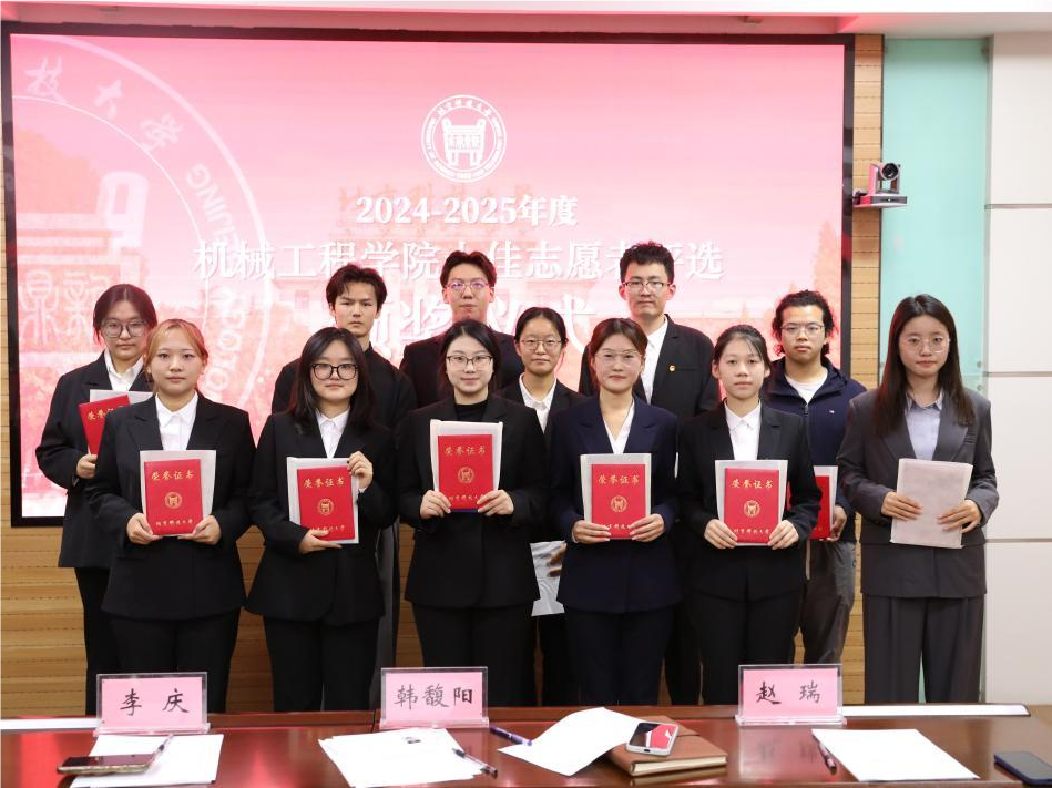 10月31日,机械工程学院2024-2025年度十佳志愿者答辩会在机电楼 1020会议室举行。韩馥阳、李庆、赵瑞及冯璇担任评委。12名大二至大四候选人围绕"我的志愿行"主题,分享志愿服务经历、思想感悟及未来规划进行答辩。韩馥阳老师做总结,肯定了候选人表现,指出其践行"奉献、友爱、互助、进步"志愿精神,展现机械学子责任担当。经评选,陈劲宇、郭叶威、郭禹萌、侯欣玲、刘文辉、桑子涵、石淞阳、王淑俞、俞浩雯、周博获年度"十佳志愿者"称号(按姓氏首字母排序)。