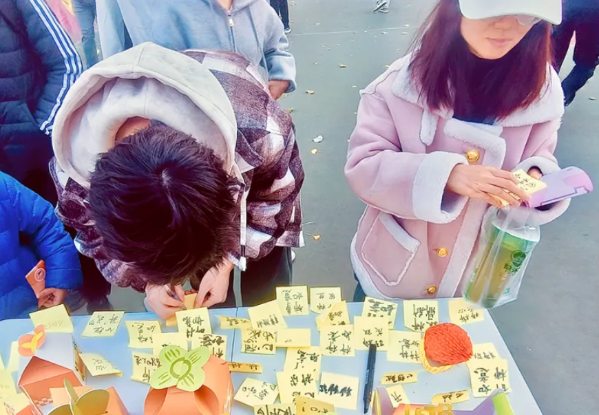 展览展出了数十份由学生亲手创作的柿子礼盒包装作品。同学们从柿子的形态与肌理中汲取灵感,巧妙融合传统意蕴与现代设计语言,在材质、色彩与结构上大胆创新。现场还设置了趣味抽奖互动环节,吸引了众多师生驻足参与,在欣赏创意设计的同时,感受到了浓厚的校园文化氛围。