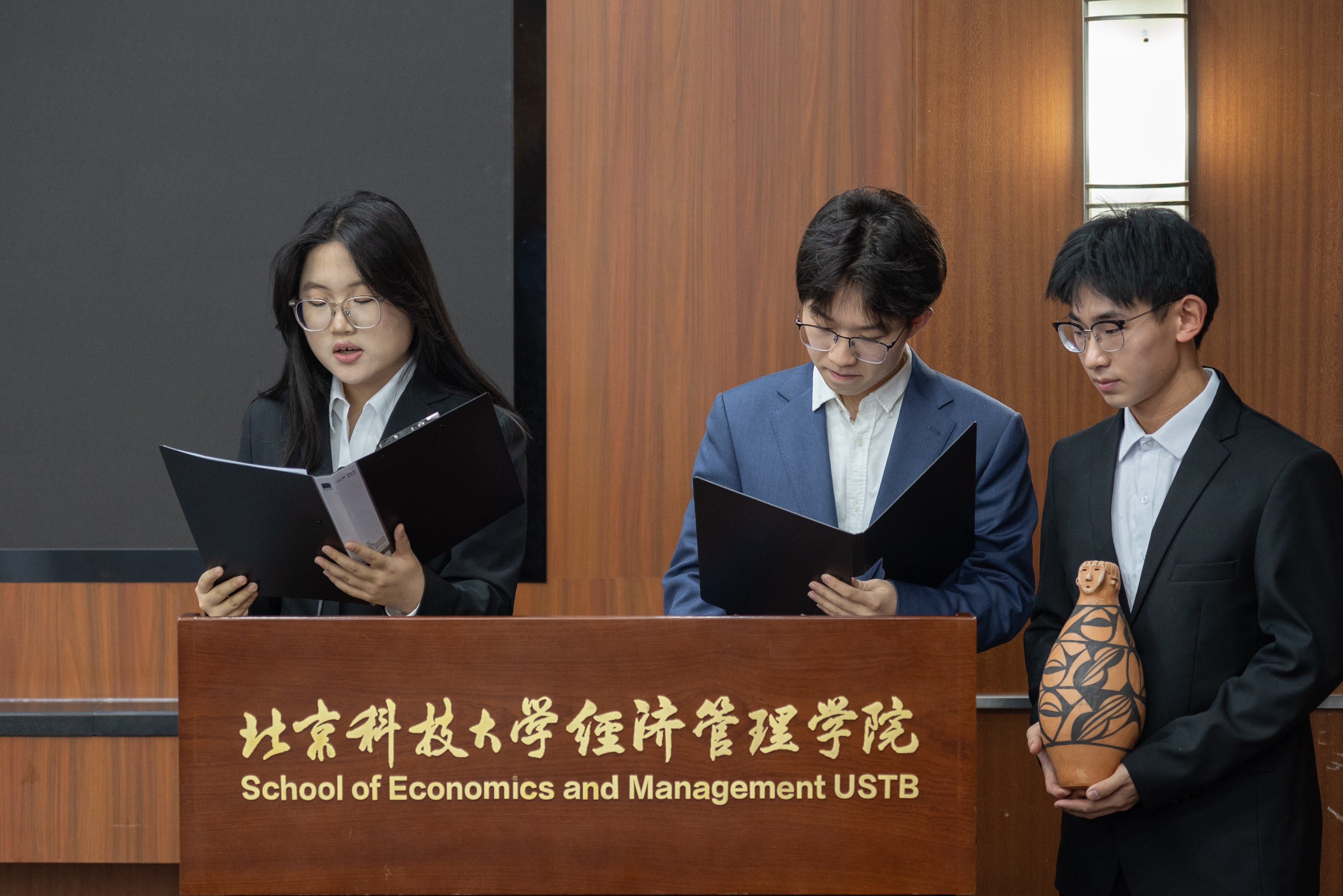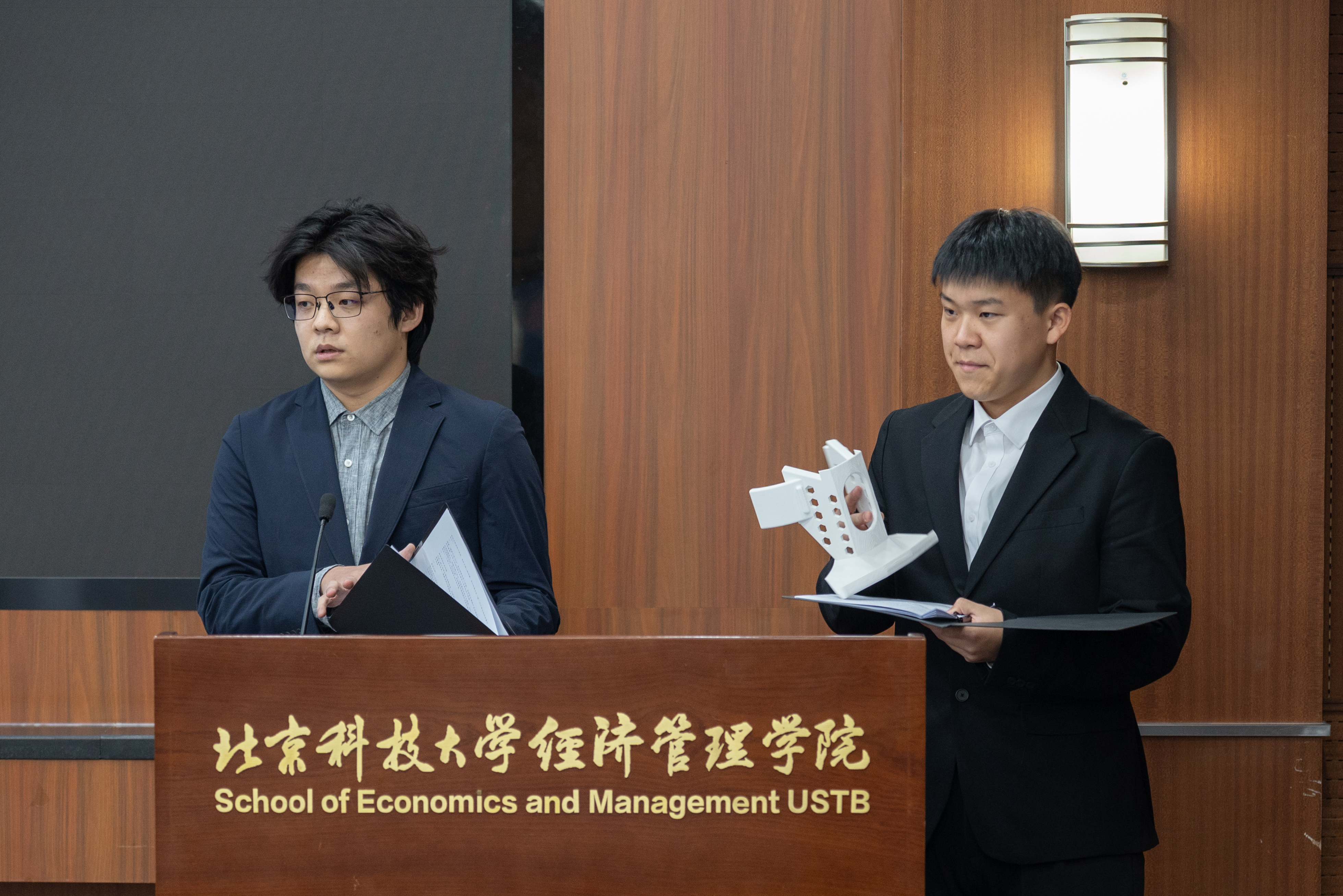 答辩过程中,各团队精心准备了多样化的展示形式:详实的文字说明项目框架,生动的视频照片还原实践过程,精准的数据分析支撑可行性论证,部分团队还带来了实物模型,以直观展现项目成果。