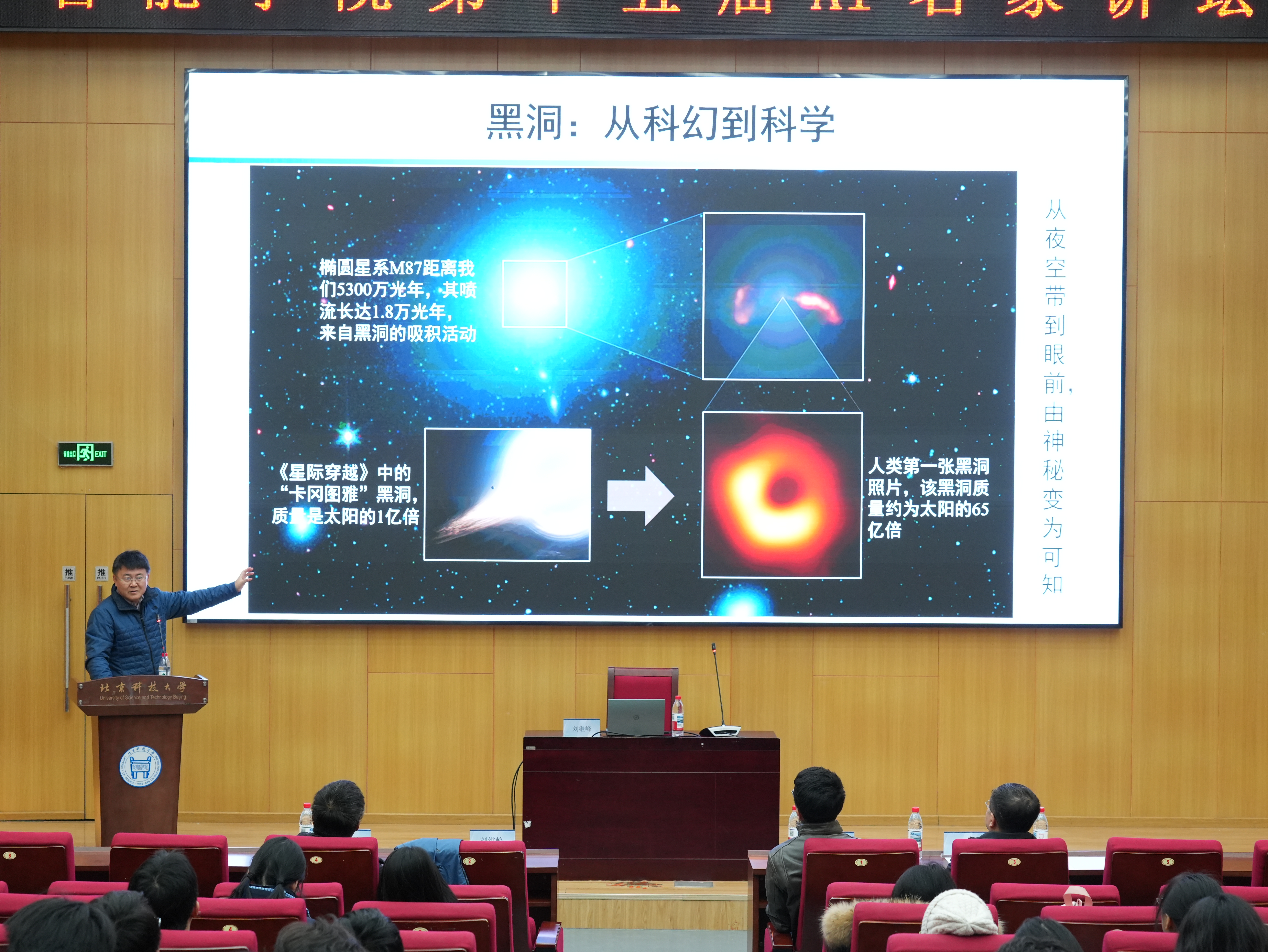 2025年12月15日,智能科学与技术学院第十五期“AI名家讲坛”在学术报告厅举行。本次讲坛特邀国家天文台台长刘继峰担任主讲嘉宾,围绕“黑洞的搜寻与刻画”展开深度分享。智能学院院长张海君、党委书记陈大鹏以及党委副书记、副院长杨阳出席活动。讲坛由智能学院教授邱波主持。