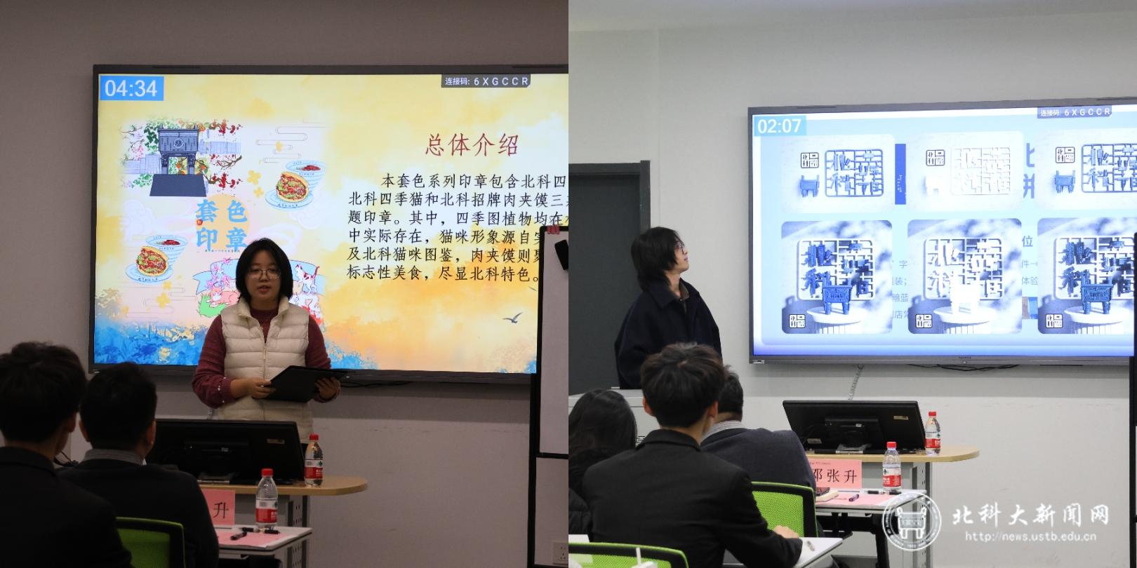 决赛现场,18支队伍携匠心之作登场,方寸之间各显神通,尽展北科创意锋芒。“临时抱佛脚队”把鼎、齿轮与银杏融进丝巾与铅笔盒,让“求实鼎新”化作随身日常;“世界就是一个巨大的套路”将四季校园、猫咪、肉夹馍刻进多色套章,一步一印,把北科故事盖在纸上;“这‘礼’是北科队”以“礼”谐音“理”,合金立牌、异形折页、御守挂件深红深蓝,方寸礼盒装下钢铁摇篮的庄重;“忆叶雯光”用鎏金勾勒主楼,通透亚克力银杏叶藏进U盘与书签,棕金礼盒把知识与回忆一并封存;“色染北科”抽拉明信片以“仓灵、槐序、素商、元序”命名四季,抽拉小卡遇光变色,一票寄出满井路的晨昏;“美在四季贝壳”把体育馆、主席像、逸夫楼拼成四季版画,春樱夏荫秋叶冬雪,片片相连是学子与母校的深情。
