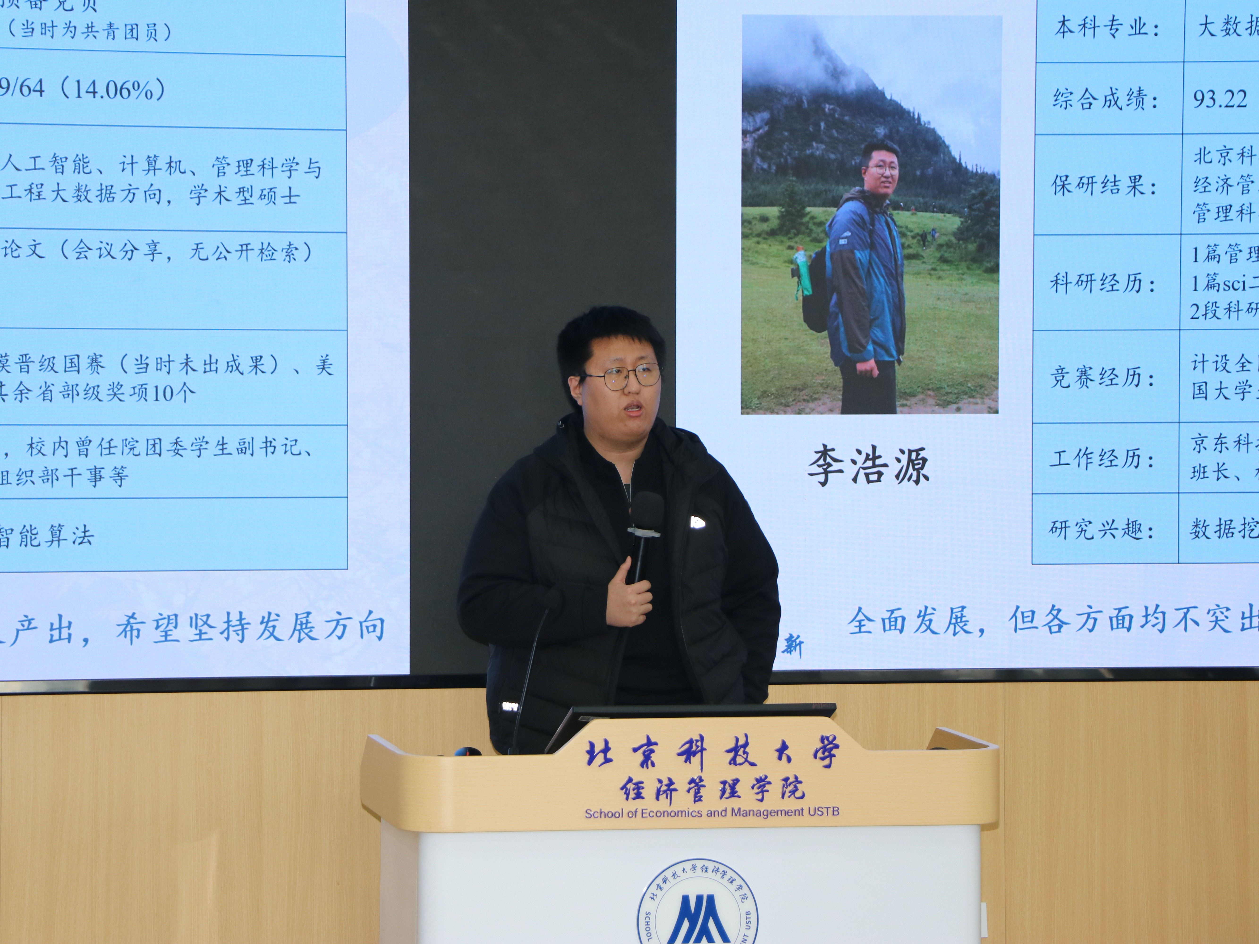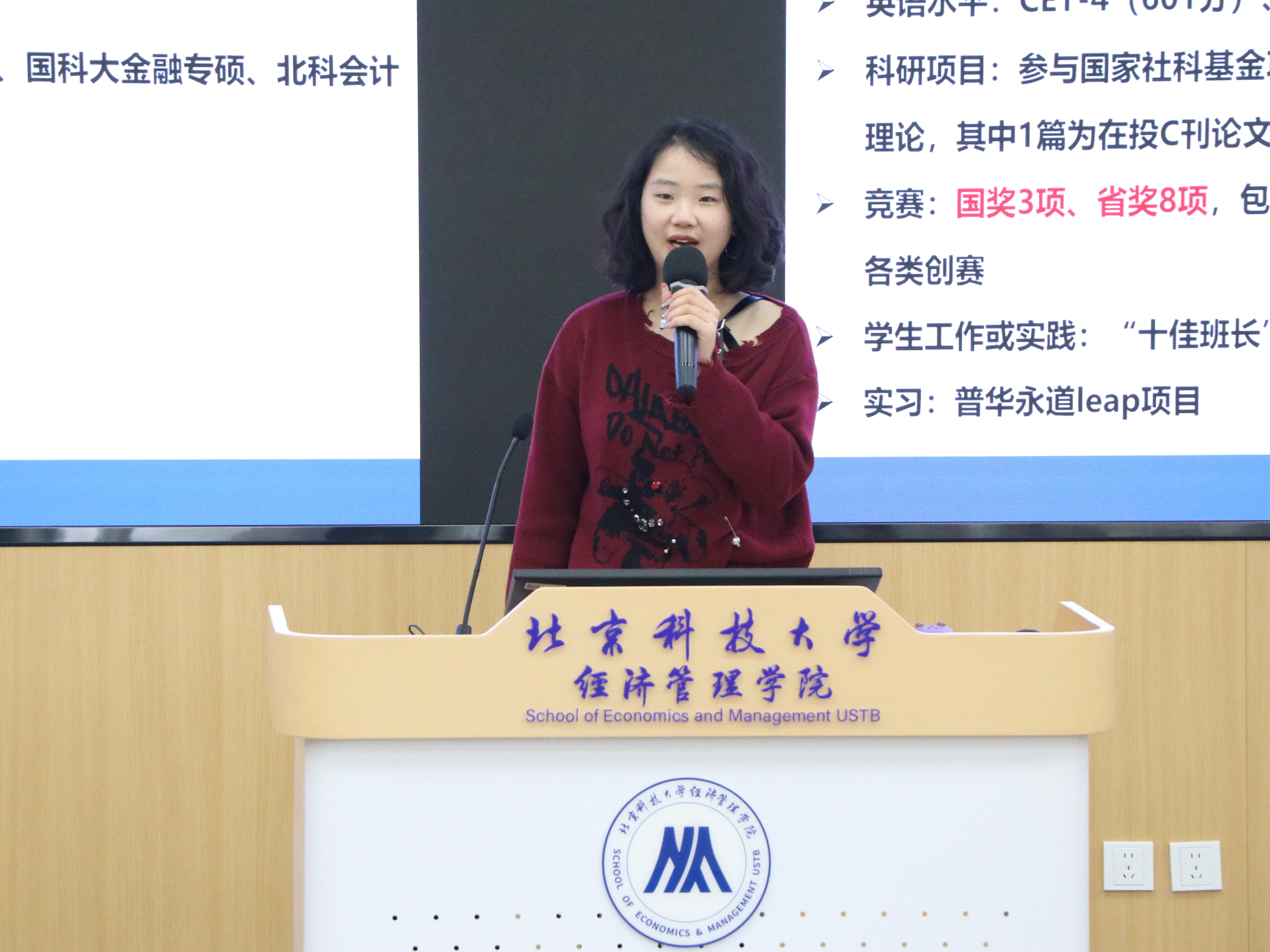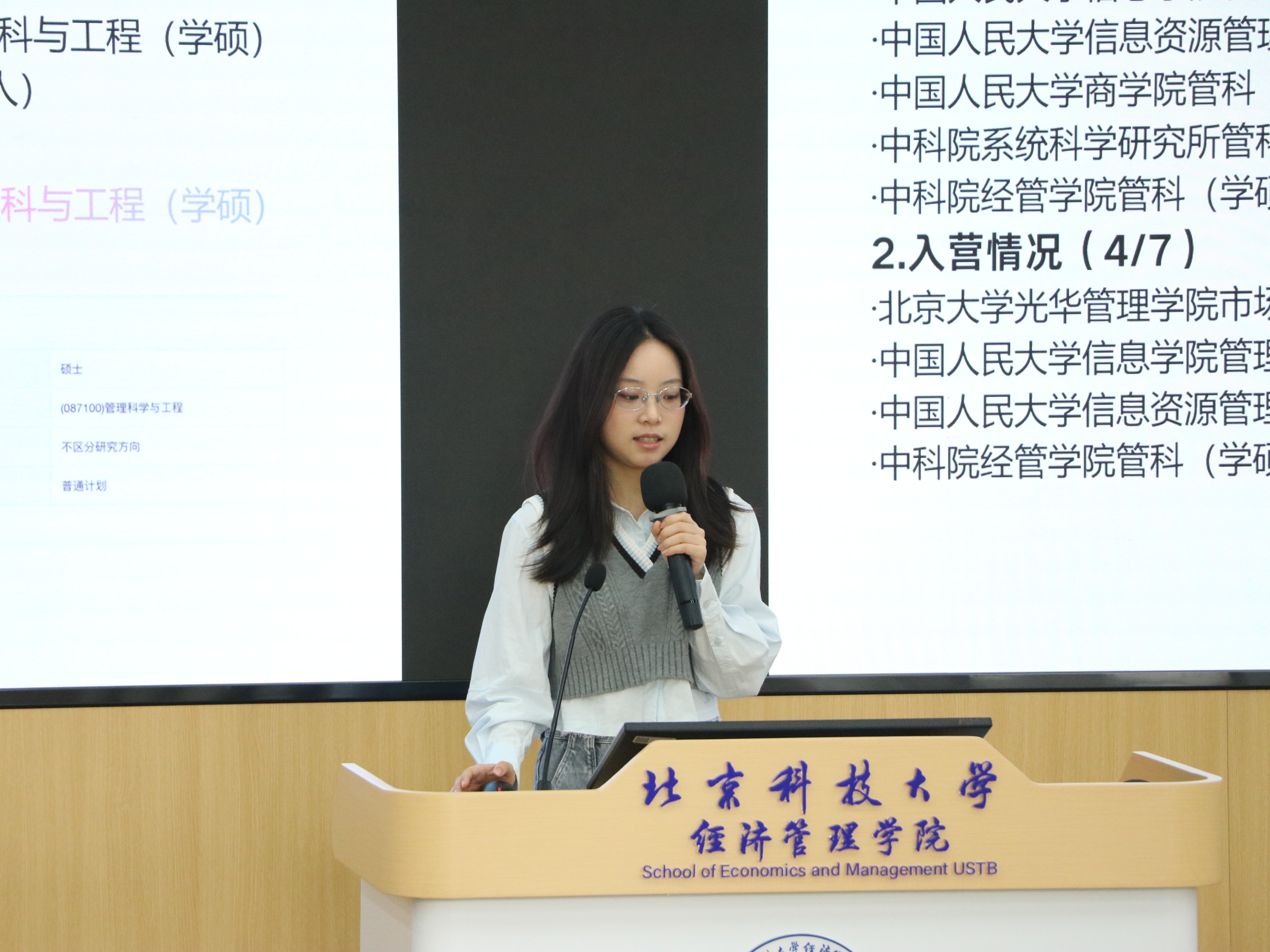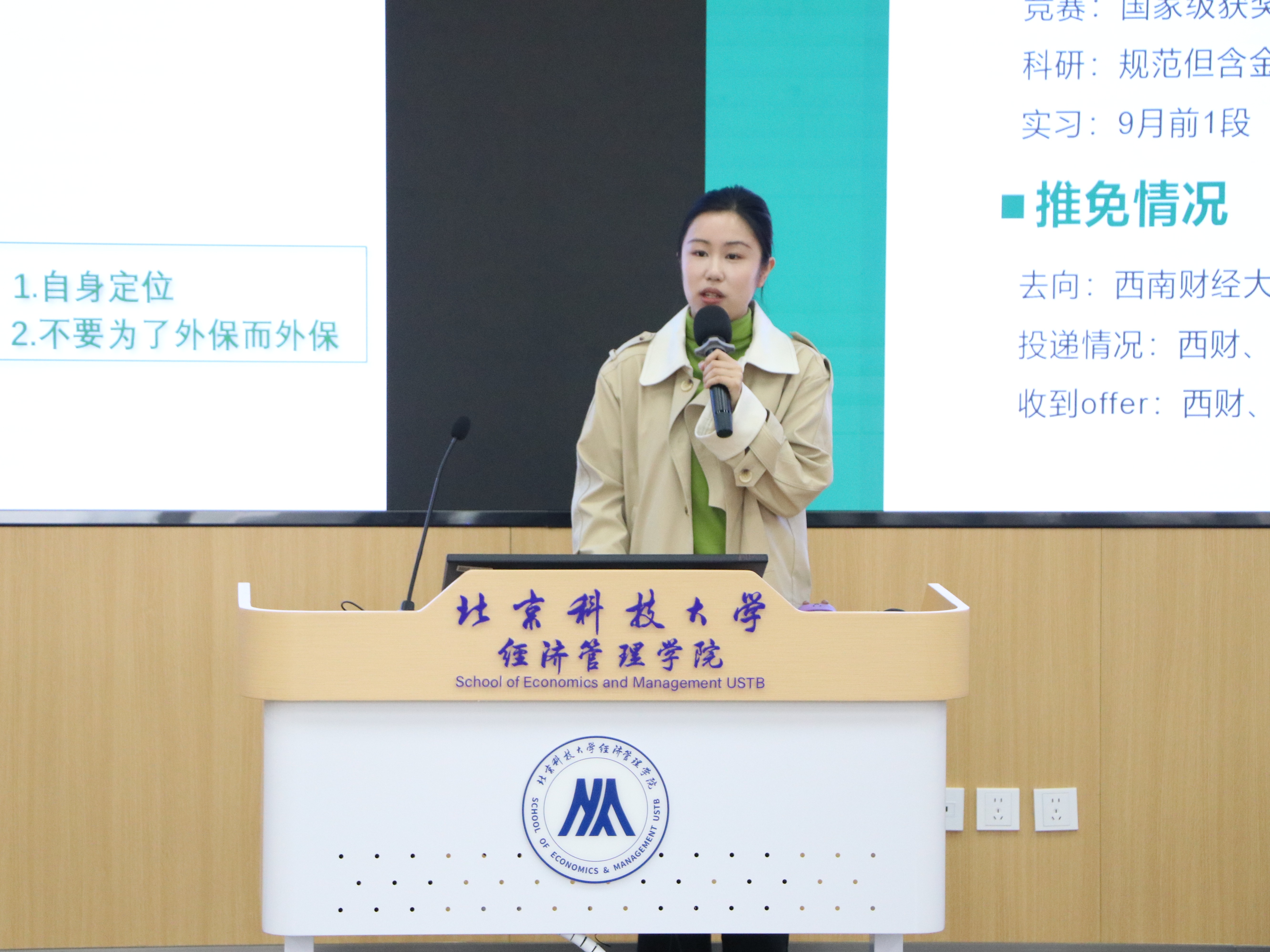 此外,国贸222班蒋雨悦梳理保研流程与材料准备要点,并结合专业特点给出专业课复习建议;金融222班白玉莲介绍不同院校夏令营入营考核标准与笔面试准备策略;会计222班张王竞熙分阶段讲解夏令营入营前后准备重点;工商221班尹佳仪解读工商管理专业保研方向选择,并为学弟学妹送上鼓励。