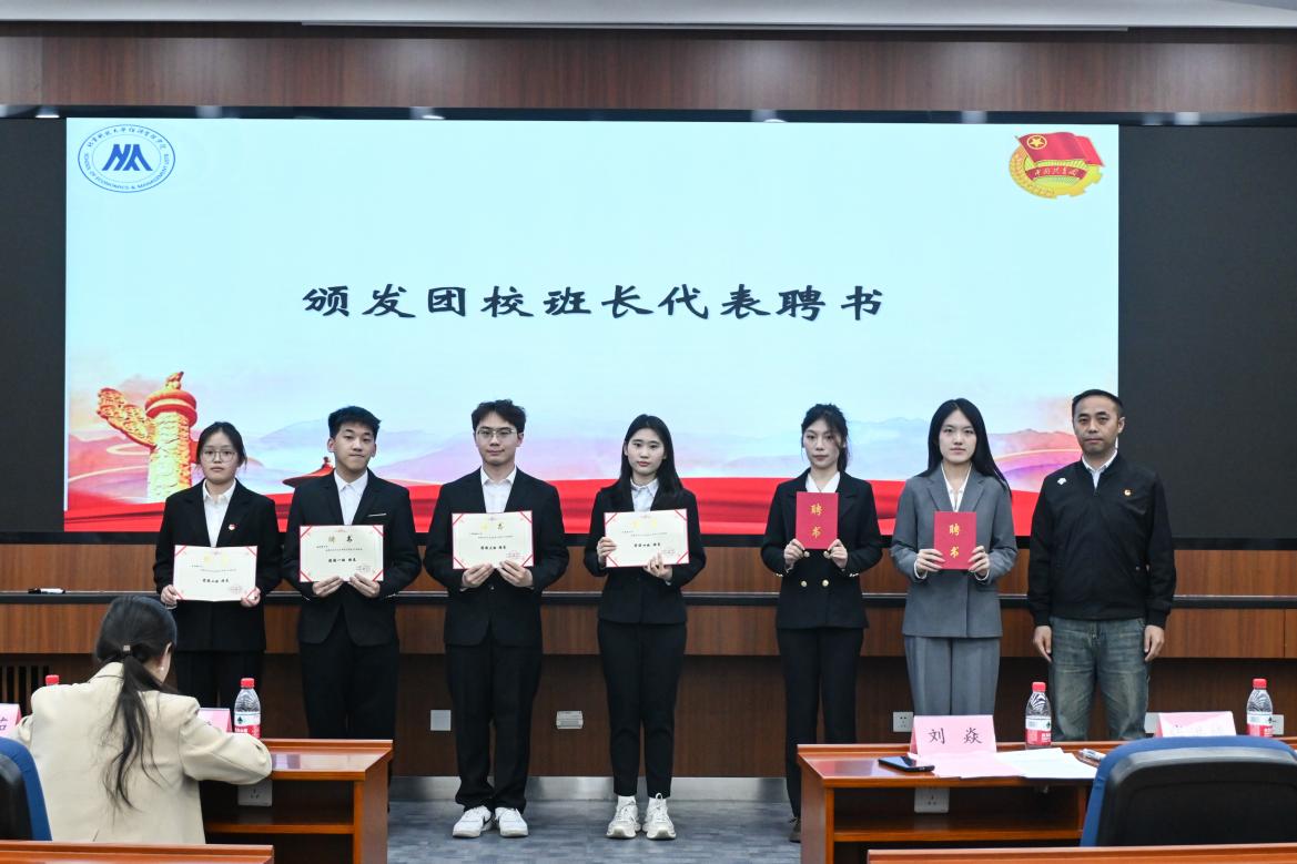 校团委副书记刘璐,经管学院党委副书记、副院长刘焱,学院团委书记张洪榛,本科24级辅导员王琳茹,本科25级辅导员、团校班主任周一帆、王丹蕊出席此次活动,经济管理学院全体团学干部参加典礼,典礼由张洪榛主持。