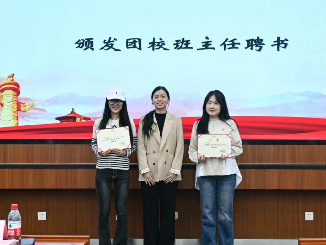 刘璐为团校班主任颁发聘书。