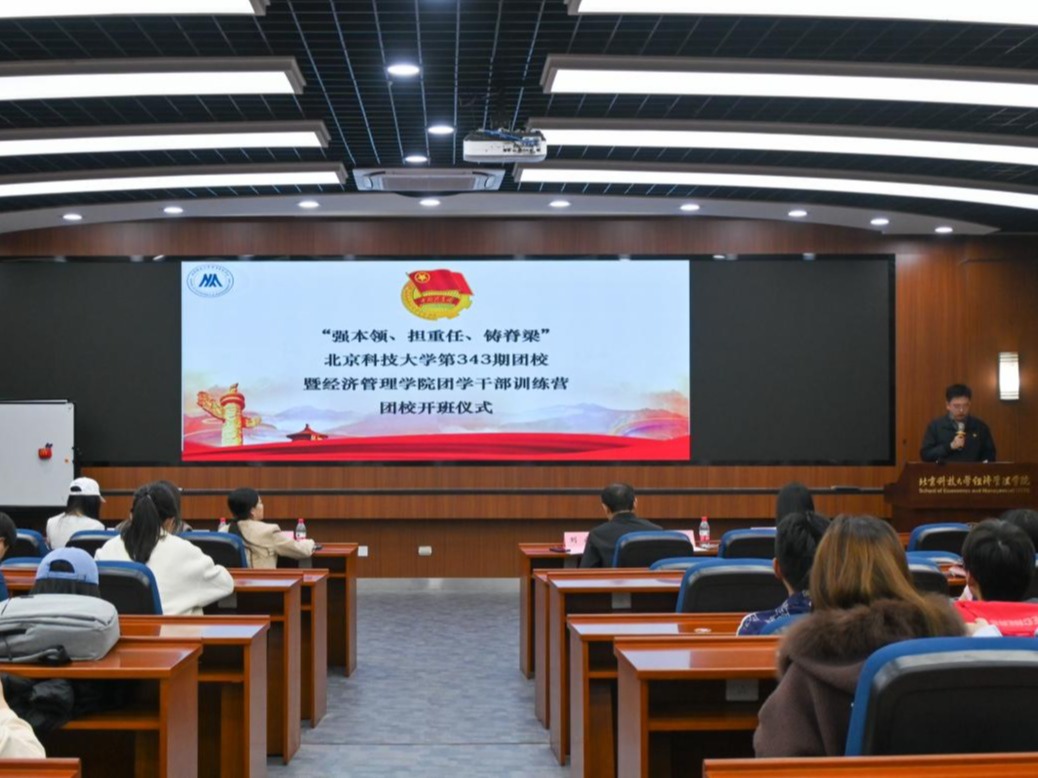 3月25日晚19:00,北京科技大学第343期团校暨经济管理学院团学干部训练营开班仪式暨团校第一讲顺利举办。