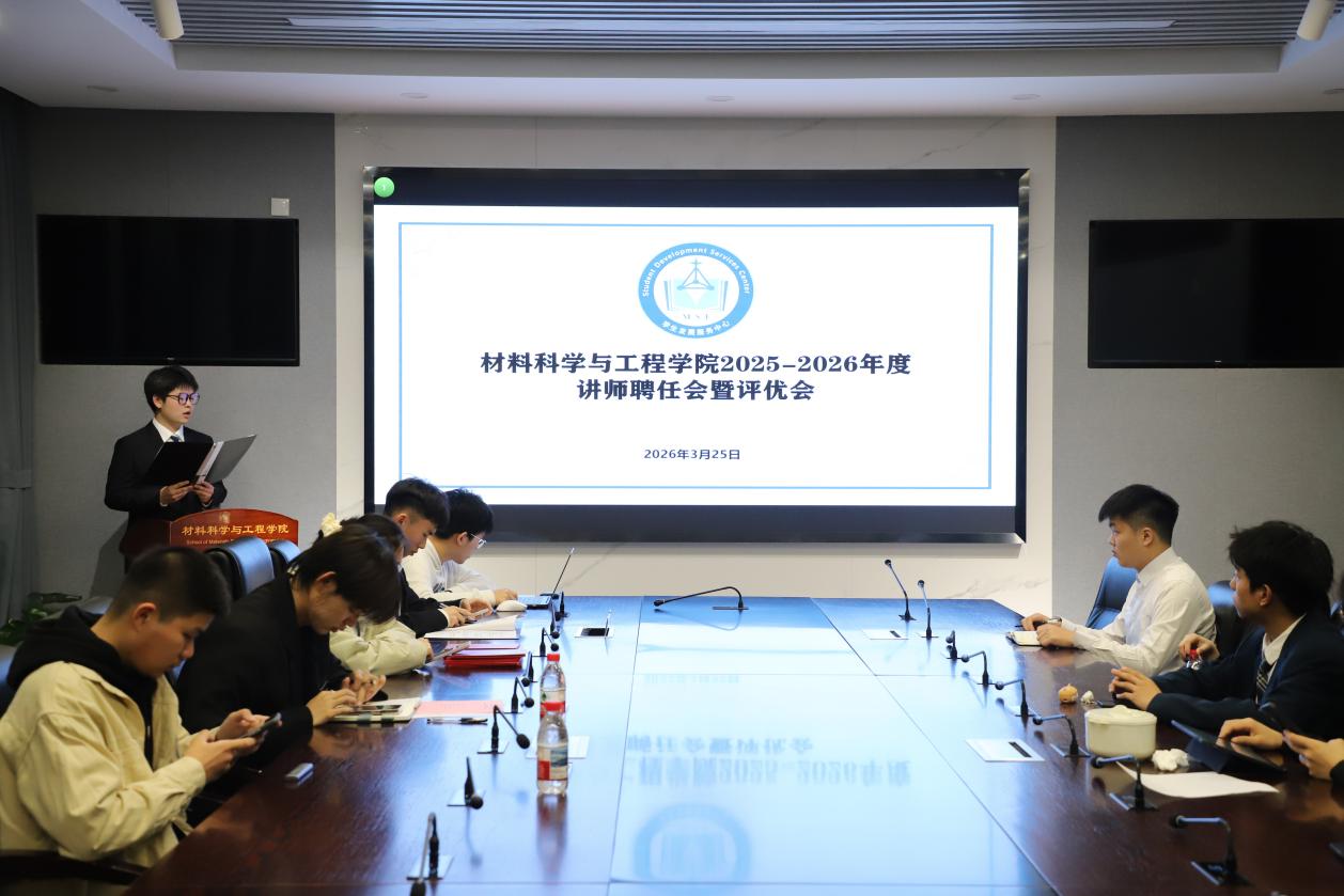 为深入推进材料学科“双一流”建设,营造优良学风氛围,助力学业困难学生攻克学习难关,3月25日晚19:00,由材料学院团委学生发展服务中心主办的材料学院2025-2026学年“育材”讲师团讲师聘任仪式暨讲师评优活动在主楼313-1会议室顺利开展。出席本次活动给的嘉宾有:材料学院团委学生发展服务中心及“育材”讲师团指导教师指导老师、材本25级辅导员范名凯,2024-2025学年优秀讲师获奖代表方希贤。