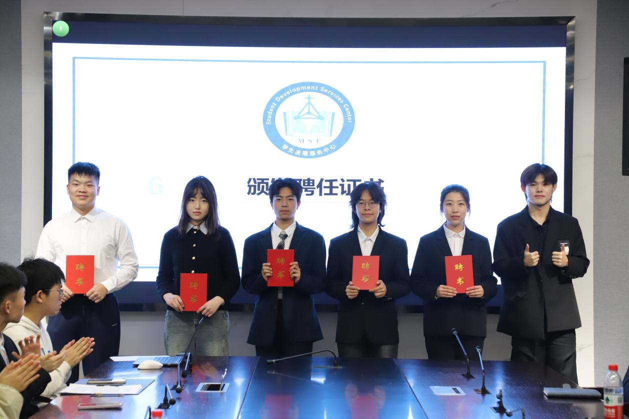范名凯为新任讲师颁发聘书,并合影留念。