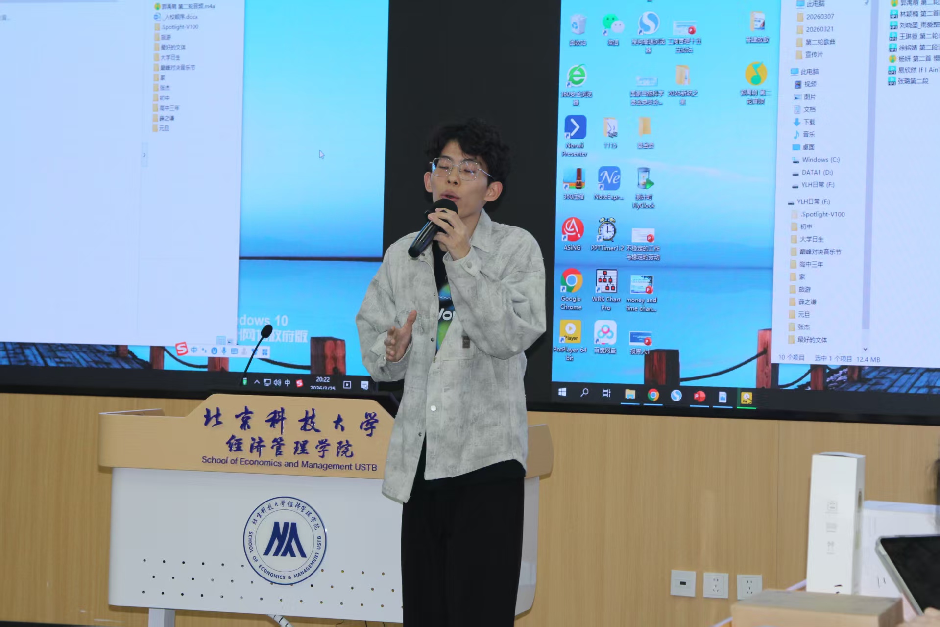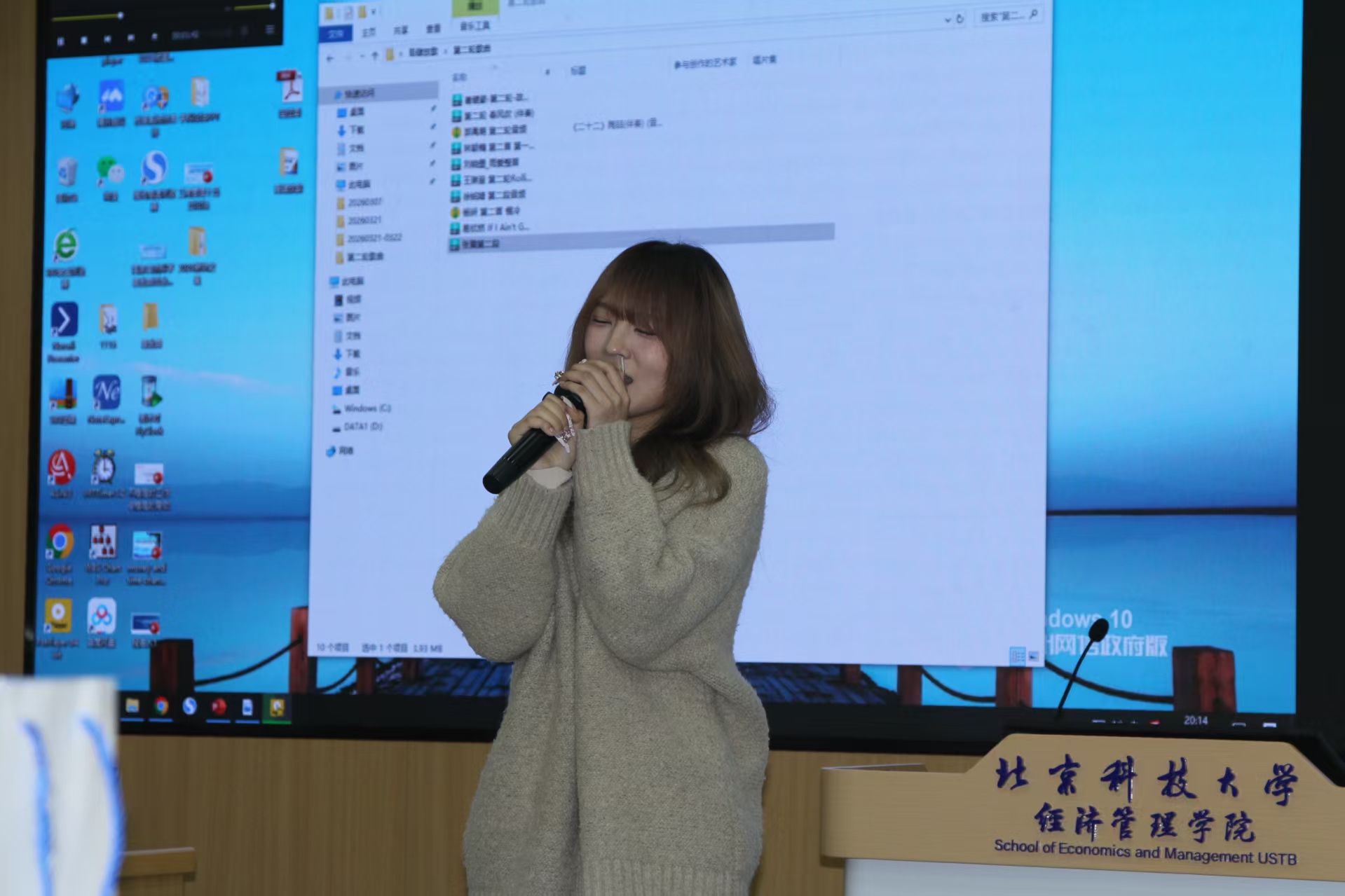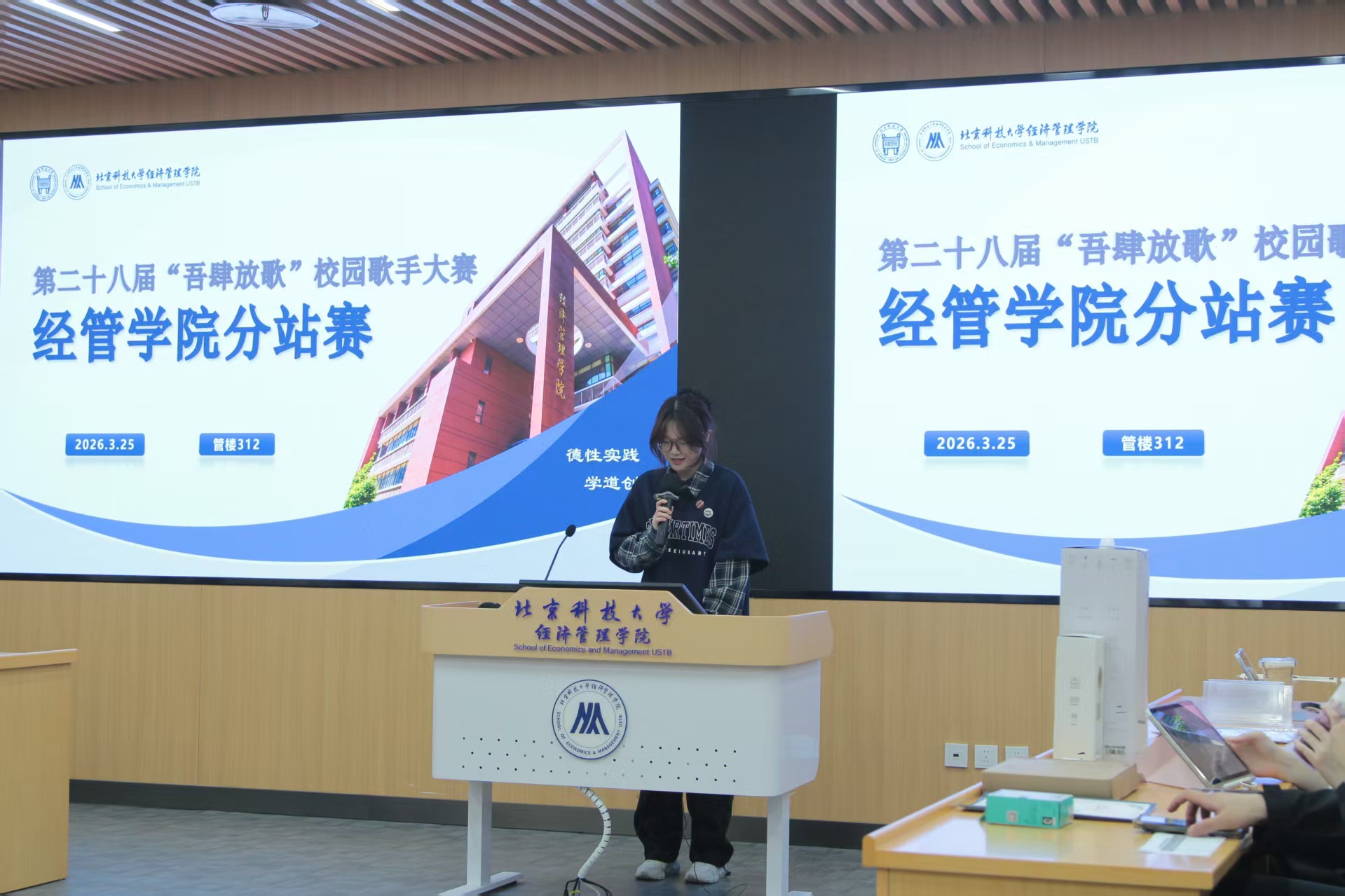 本次经管分站赛线下赛选手历经精心打磨与充裕准备,每一个音符都沉淀着热爱与执着。此刻,他们将用最真挚的声音,在舞台中央绽放光芒,为我们献上一场动人心弦的音乐之旅,共同奔赴那份属于歌声的荣耀。北京科技大学第二十六届吾肆放歌大赛冠军赵宇航,北科DDBM前任副团长、爱音乐社现任副社长赵一迪,北京科技大学学生合唱团副团长洪艺菲,北京科技大学学生会工作人员龚泓羽担任评委。