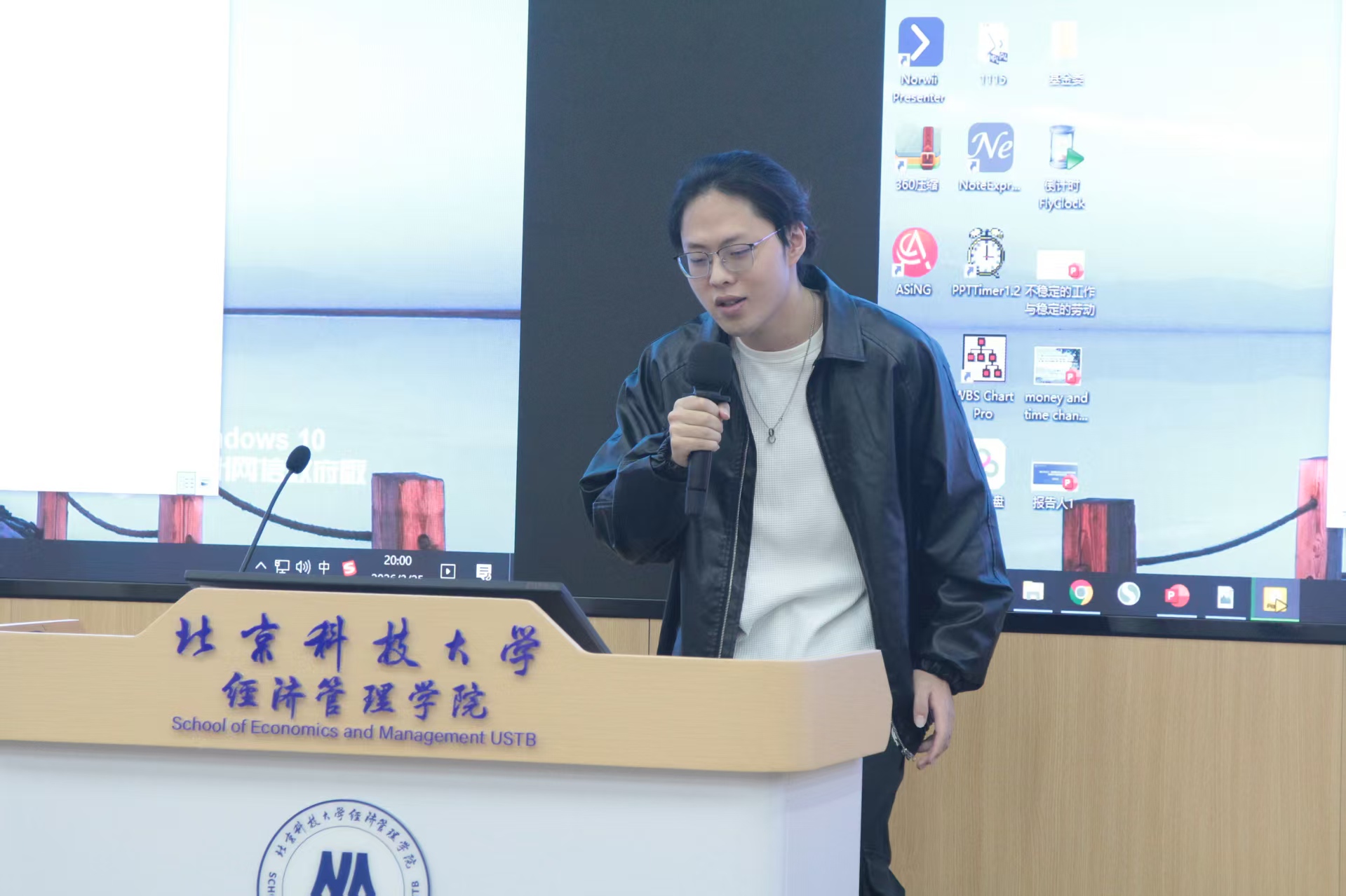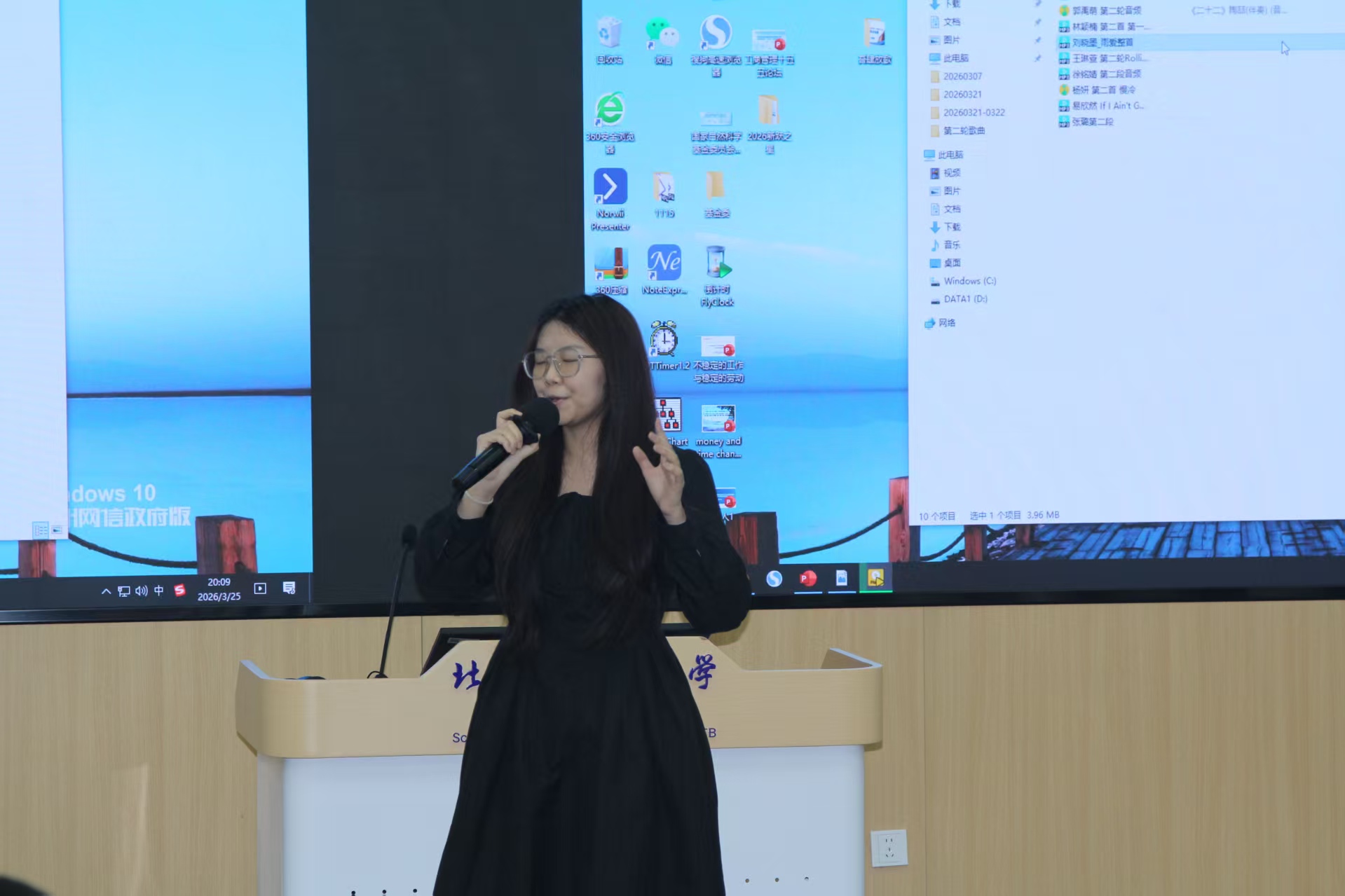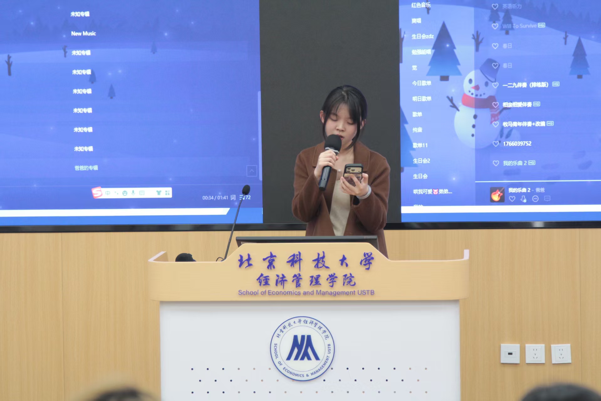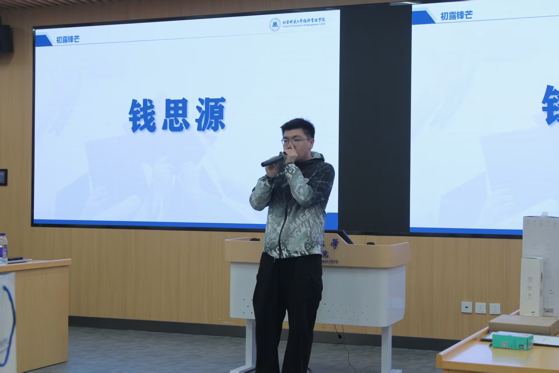 本次经管分站赛线下赛选手历经精心打磨与充裕准备,每一个音符都沉淀着热爱与执着。此刻,他们将用最真挚的声音,在舞台中央绽放光芒,为我们献上一场动人心弦的音乐之旅,共同奔赴那份属于歌声的荣耀。北京科技大学第二十六届吾肆放歌大赛冠军赵宇航,北科DDBM前任副团长、爱音乐社现任副社长赵一迪,北京科技大学学生合唱团副团长洪艺菲,北京科技大学学生会工作人员龚泓羽担任评委。