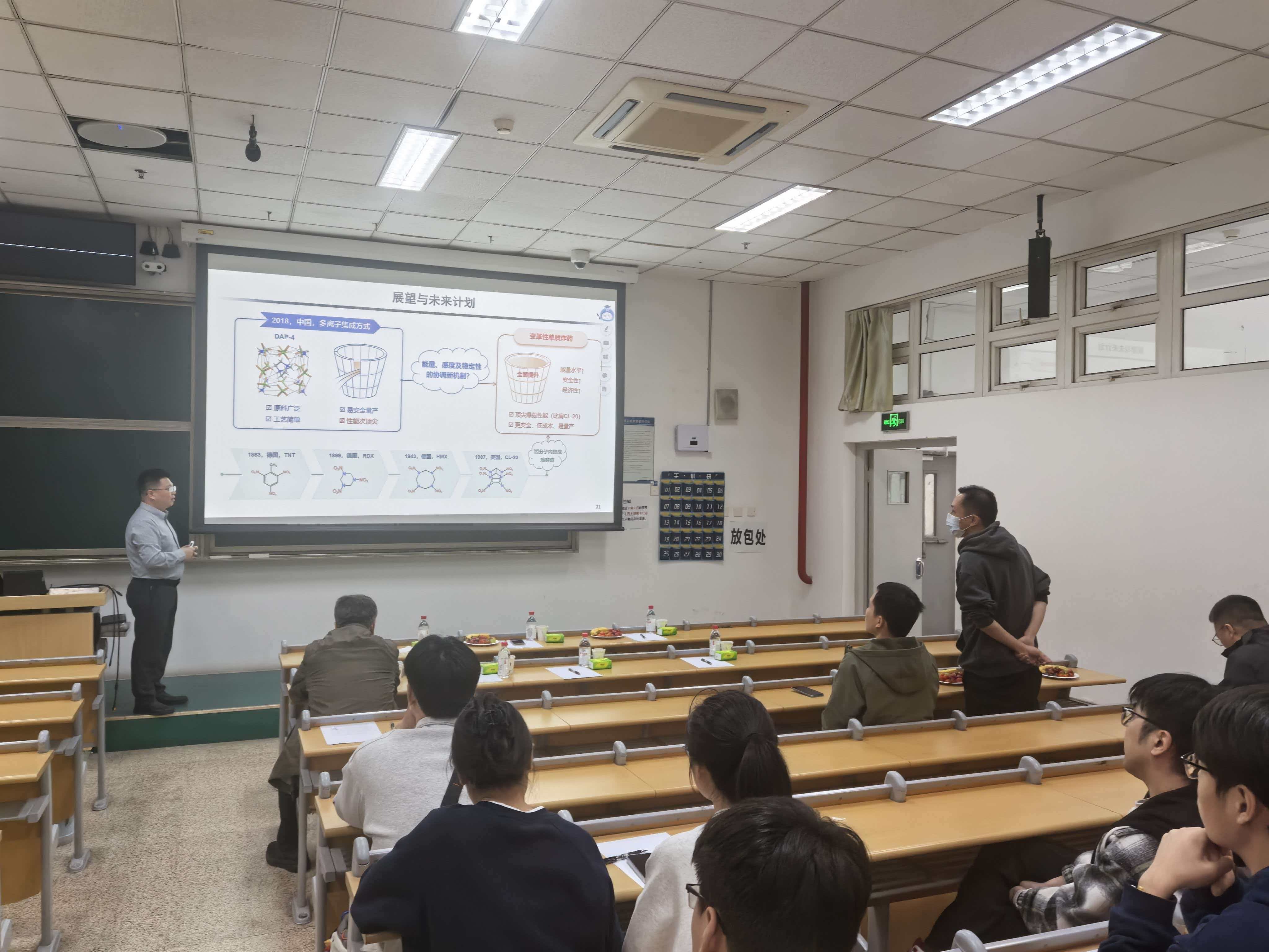 在互动环节,现场研究生们抓住宝贵机会踊跃提问。“如何在实验中捕捉瞬态反应中间体?”“含能材料从实验室到工业化生产的最大瓶颈是什么?”面对同学们的犀利发问,两位教授结合自身经验,从实验设计技巧到科研思维培养,逐一进行了耐心细致的解答,并鼓励大家在交叉学科中寻找新的增长点。