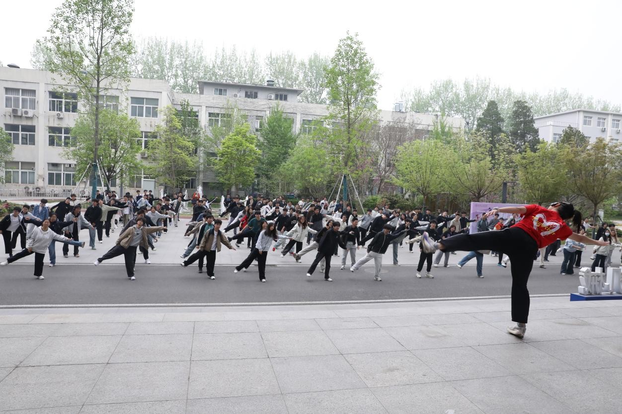 活动现场,在《最炫民族风》的动感节拍中,热身教练带领全体同学们伴随着音乐律动身体。
