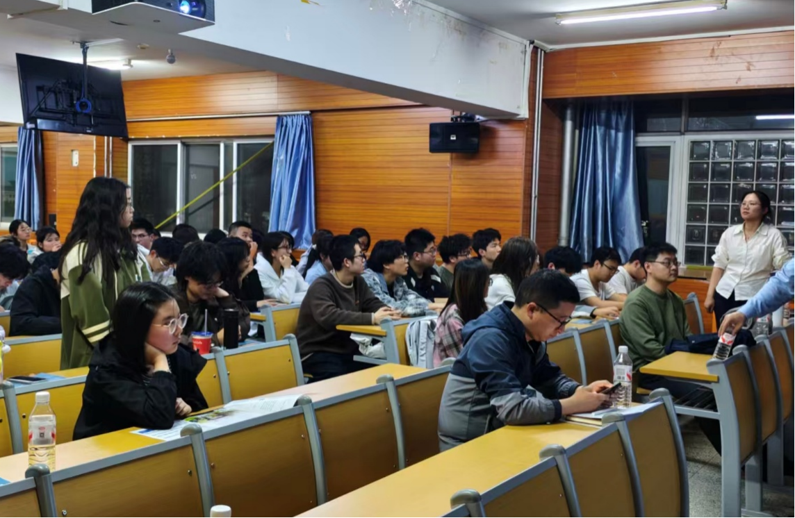 互动交流环节,同学们围绕考公岗位、出国深造、考研保研、跨行业就业、校企联合培养、薪资涨幅等问题踊跃提问,老师们与校友结合经验逐一细致解答,现场氛围热烈。