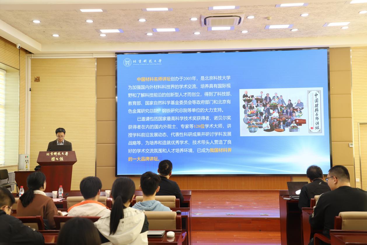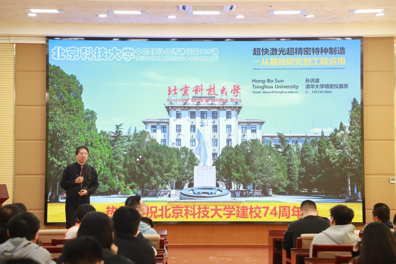 4 月 17 日,中国材料名师讲坛第128讲在图书馆报告厅顺利举行。中国科学院院士孙洪波教授受邀以《激光超精密特种制造:从基础研究到工程应用》为题作专场学术报告。北京科技大学党委副书记孙景宏以及材料学部相关单位师生代表共140余人参加活动。材料科学与工程学院党委副书记、副院长尹传举主持报告会,介绍主讲嘉宾科研方向及学术成就,并宣布材料科学与工程学院第十届学术文化节正式开幕。