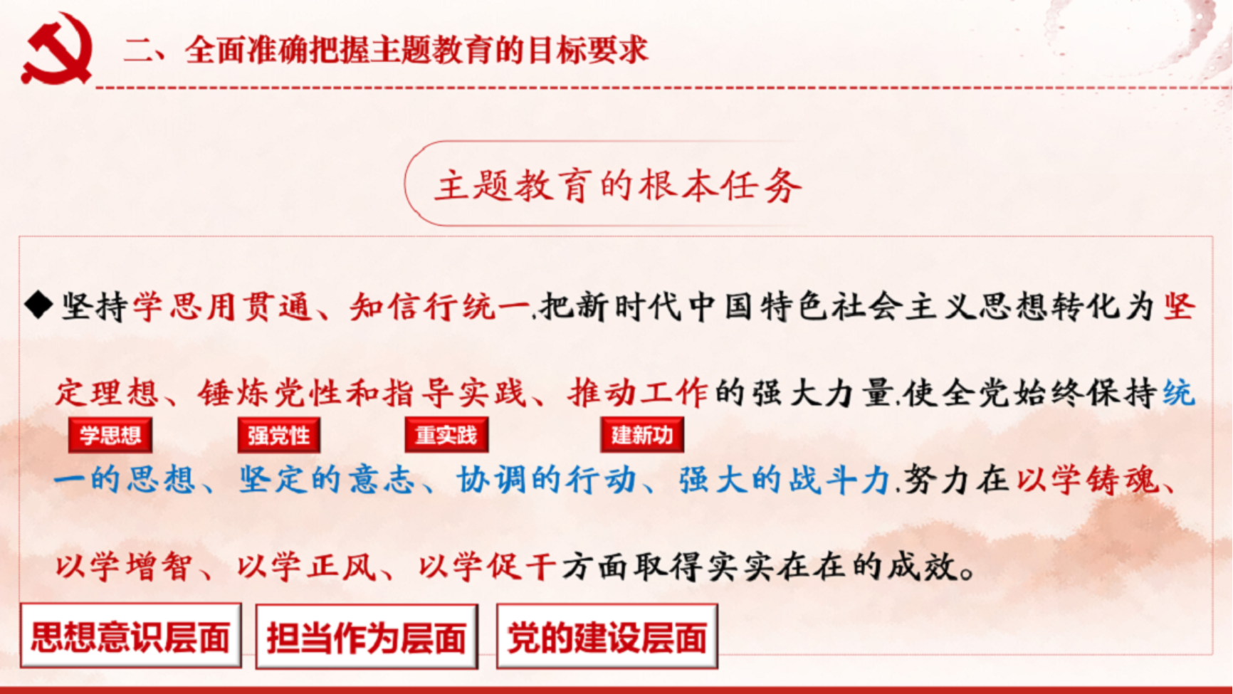 刘鲲鹏同学从深刻认识开展主题教育的重大意义、全面准确把握主题教育的目标要求两方面着手,深入解读了主题教育“学思想、强党性、重实践、建新功”的总要求、主题教育的根本任务和目标任务,以及应全面落实的重点措施,并介绍了开展主题教育要谨防的六种心态,勉励广大同学真抓实干,将主题教育与工作实际相结合,为班级、学院做出更多贡献。