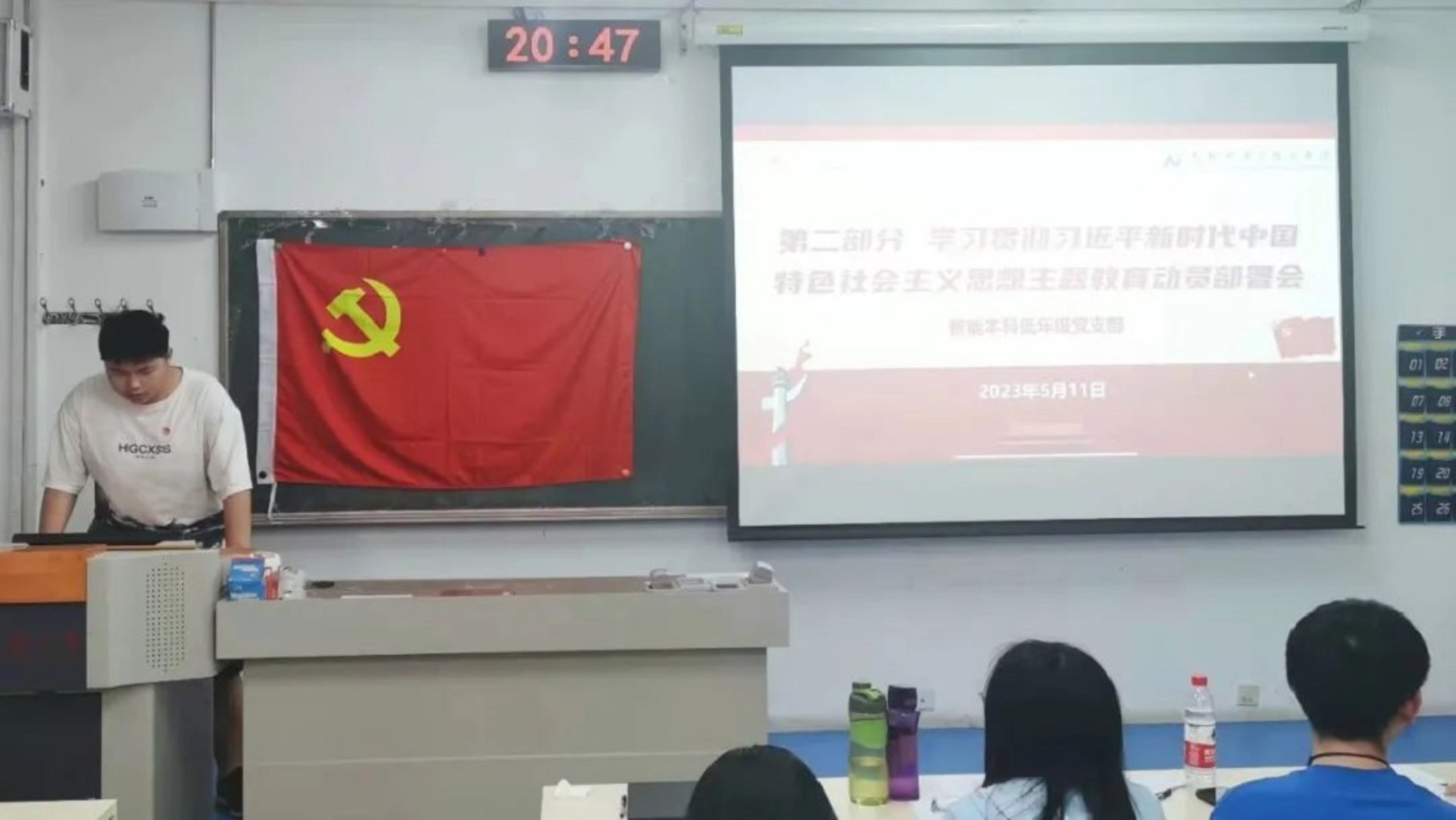 2023年5月11日晚,智能本科低年级党支部召开4月组织生活学习,主题为深入开展学习贯彻习近平新时代中国特色社会主义思想主题教育。本次组织生活学习由智能本科低年级党支部学生党员刘鲲鹏同学主持,党支部全体党员共同参与学习,并对开展习近平新时代中国特色社会主义思想主题教育进行了动员部署。