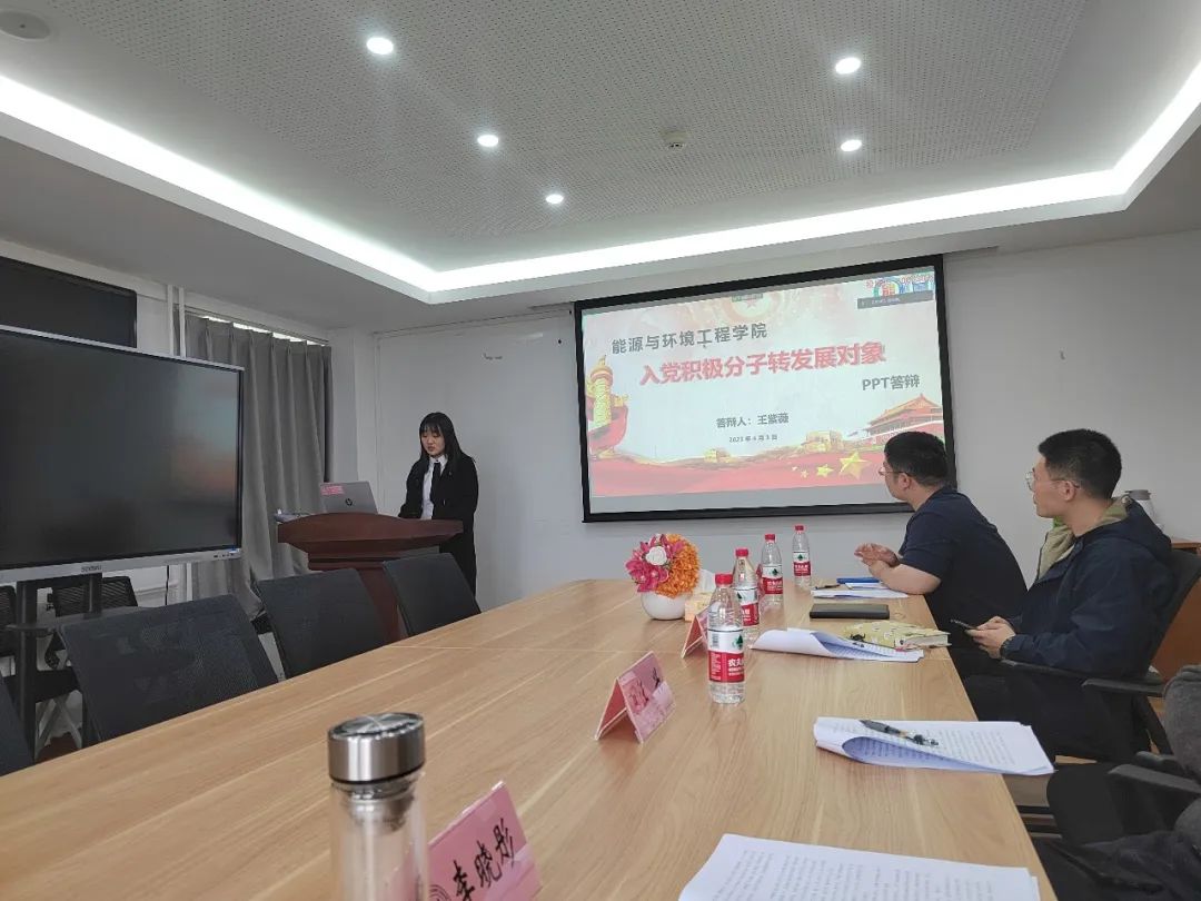 赓续光荣传统,传承时代伟力。为继续书写不负党和人民殷切期望的精彩篇章,加强对共青团员的政治引导,不断向党组织输送新鲜血液,能源与环境工程学院于4月3日下午在科技楼903召开了研究生拟发展对象答辩会。能源与环境工程学院党委副书记汪兴、党委秘书姜佳男、热能系书记尹少武、环境系书记马鸿志 、团委书记李晓彤、2021级硕士生辅导员王瑞梓、研究生辅导员马静、杨乾振参会,党建专项工作辅导员张志鹏主持。