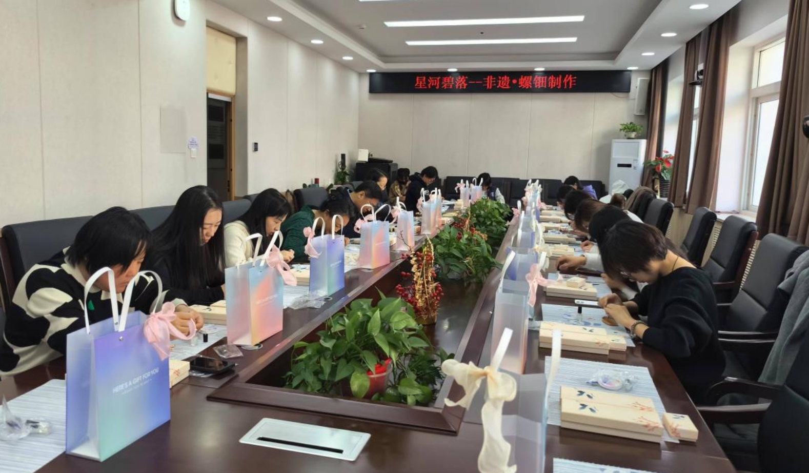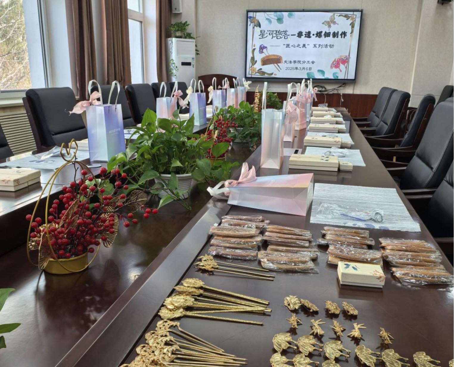 春拂北科,文韵流芳。在第115个“三八”国际妇女节到来之际,北京科技大学文法学院分工会于3月6日在文法楼210会议室举办“星河碧落——非遗·螺钿制作”主题创意活动。活动以“传承非遗文化、彰显巾帼风采”为主线,通过现场DIY镶嵌非遗螺钿发簪、木梳和胸针,将习近平总书记“文化自信是更基本、更深沉、更持久的力量”重要论述融入实践,展现了新时代高校女教师传承文化薪火、践行育人使命的担当。