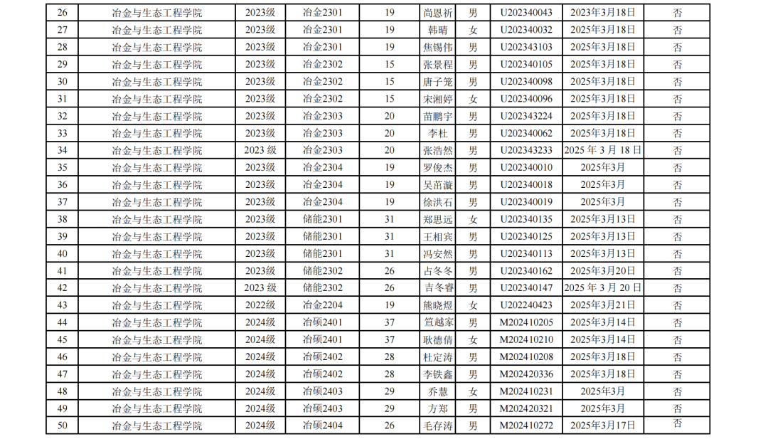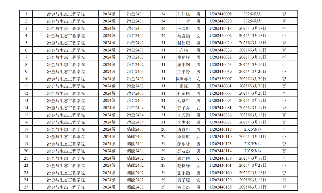 根据《关于印发北京科技大学推优入党工作实施办法的通知》(校党发〔2021〕27号)、《冶金与生态工程学院推优入党工作细则》,冶金与生态工程学院团委于2024-2025学年第二学期对各团支部推优入党工作进行监督与统计,并对推荐对象资格进行审核,拟向党组织推荐60名优秀共青团员。现将本阶段推优结果公示,具体名单如下: